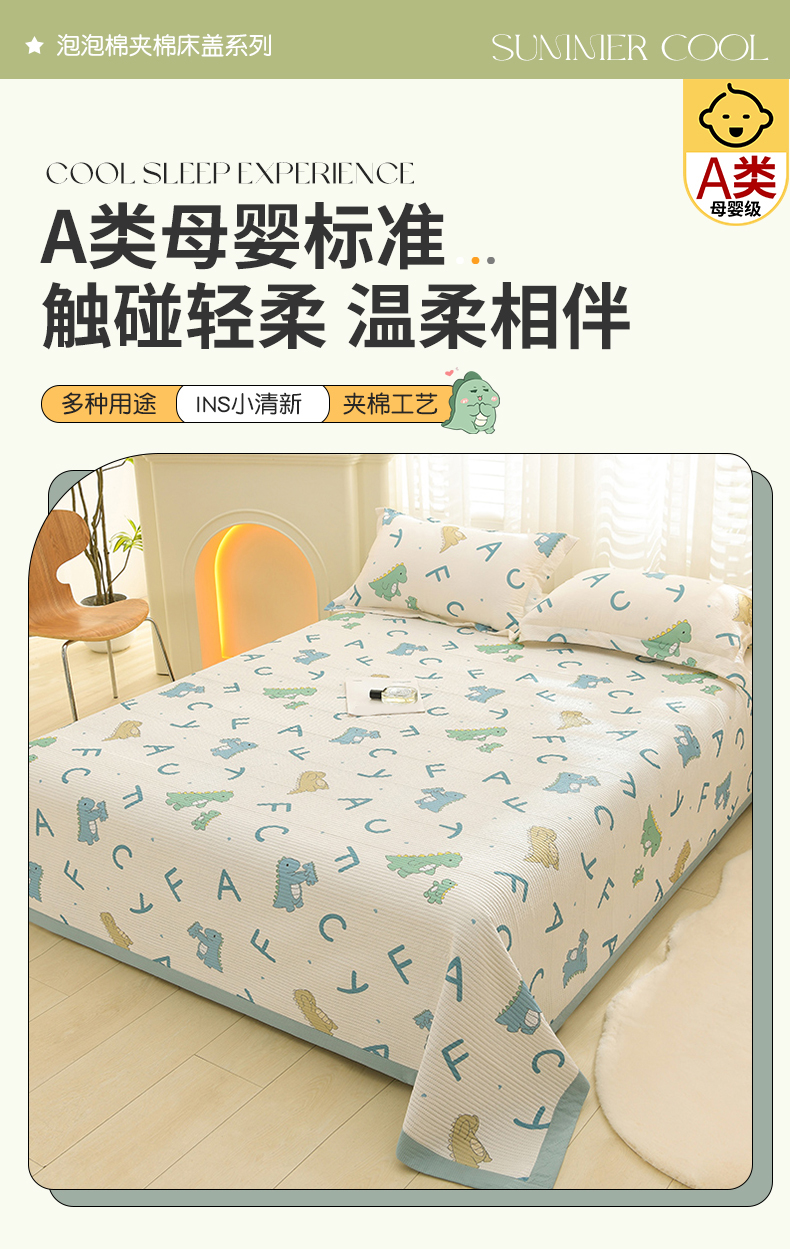圣楚家纺 2024新款A类泡泡棉夹棉床盖甜馨宝贝