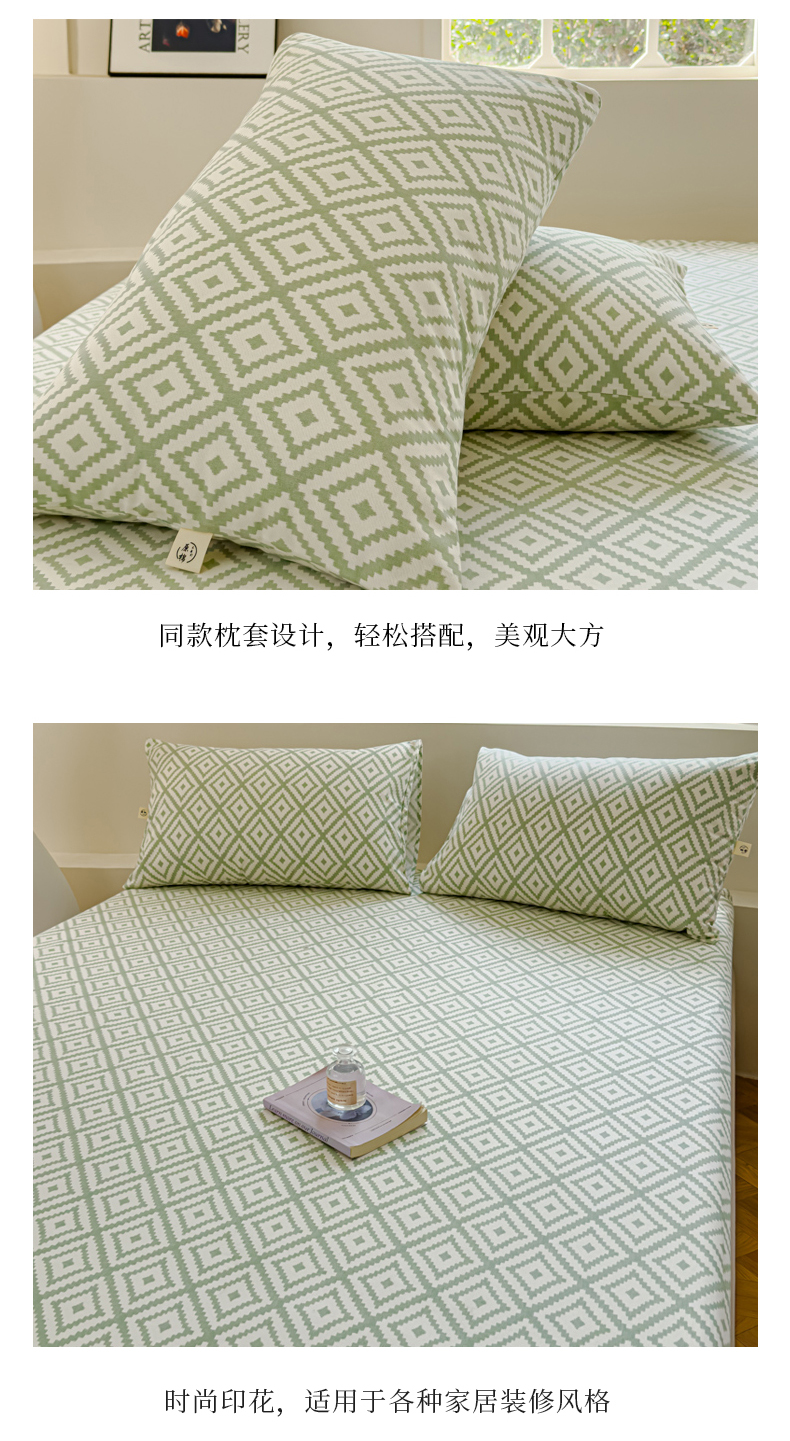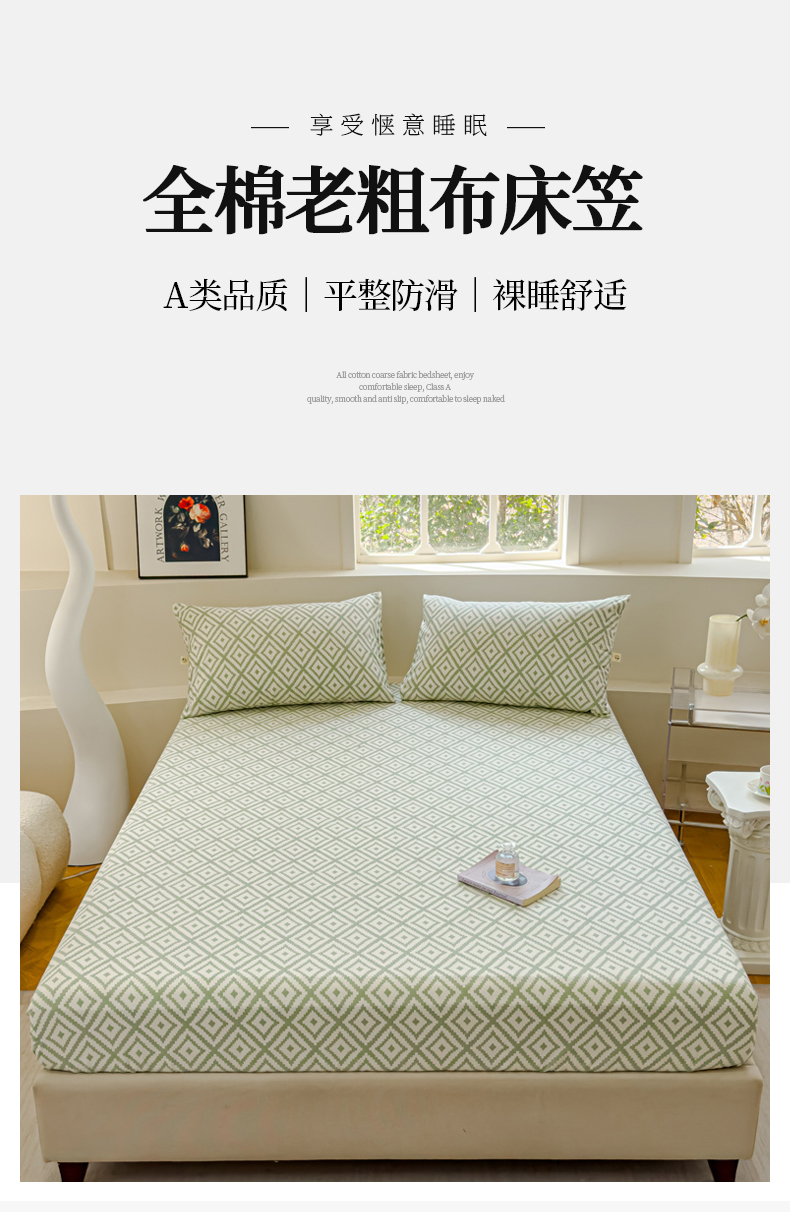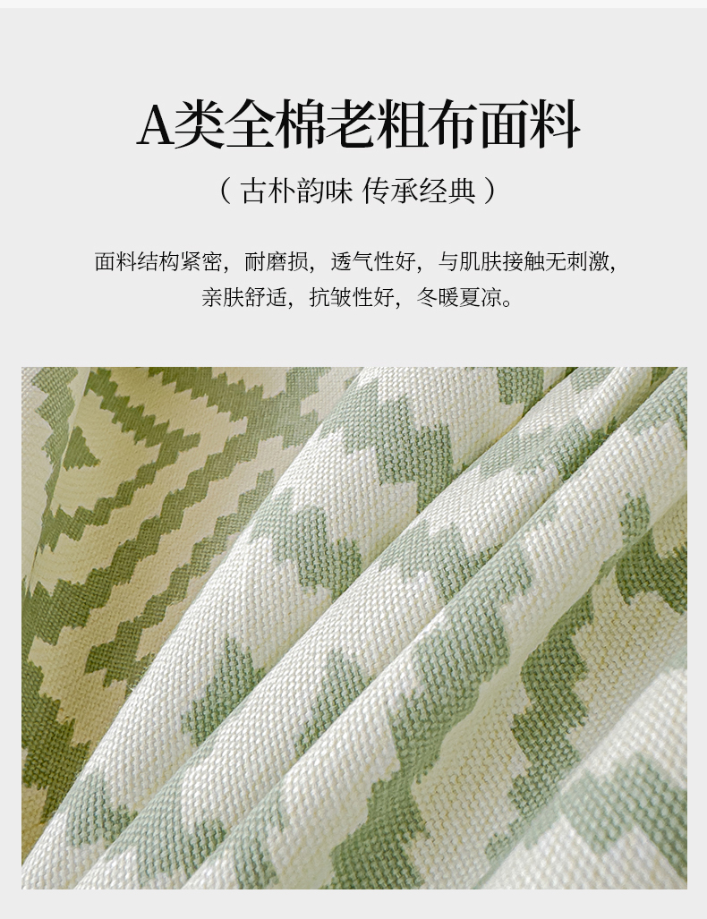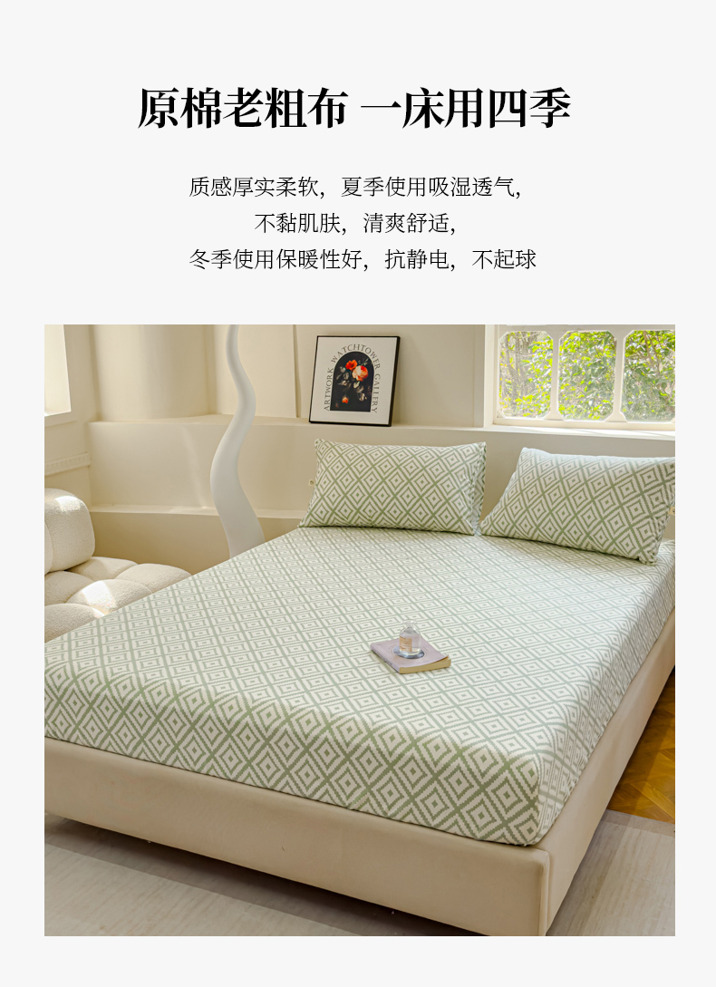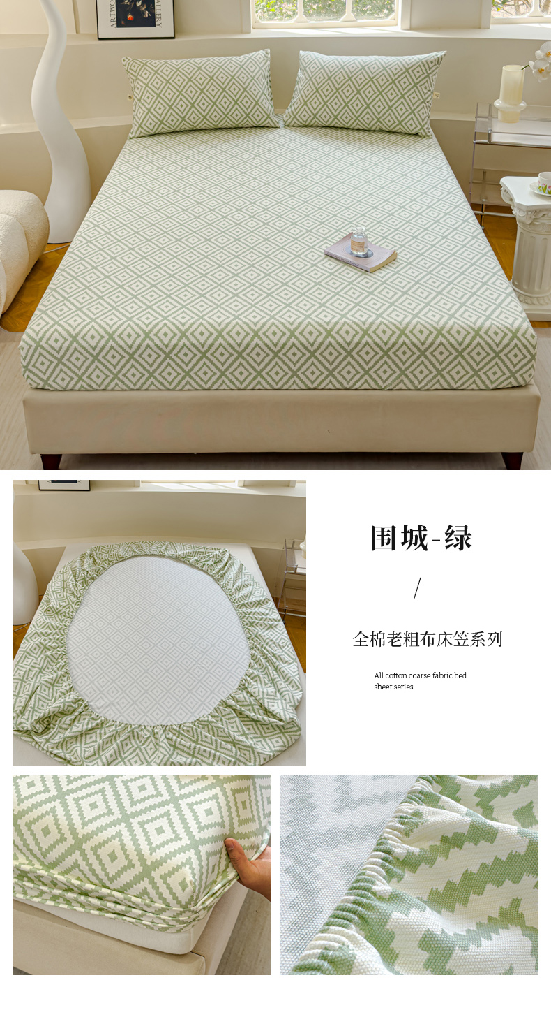 • 91家纺网 家纺一手货源 找家纺 金丝鸟家纺 2024新款成人款A类老粗布床笠 围城 绿