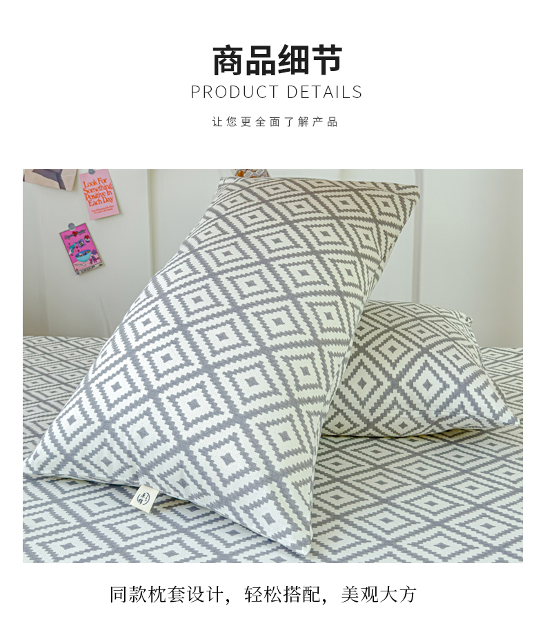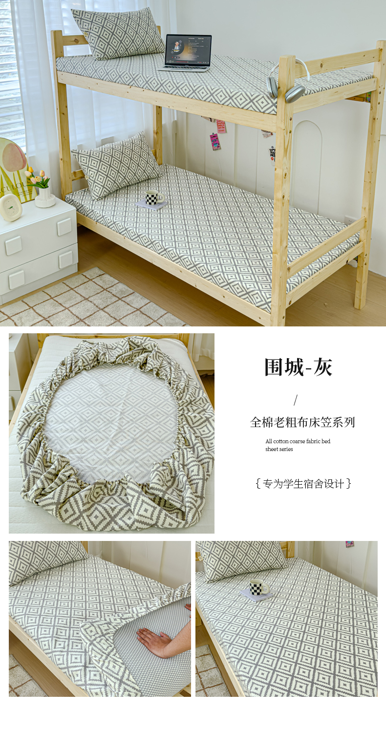 • 91家纺网 家纺一手货源 找家纺 金丝鸟家纺 2024新款学生款A类老粗布床笠 围城 灰