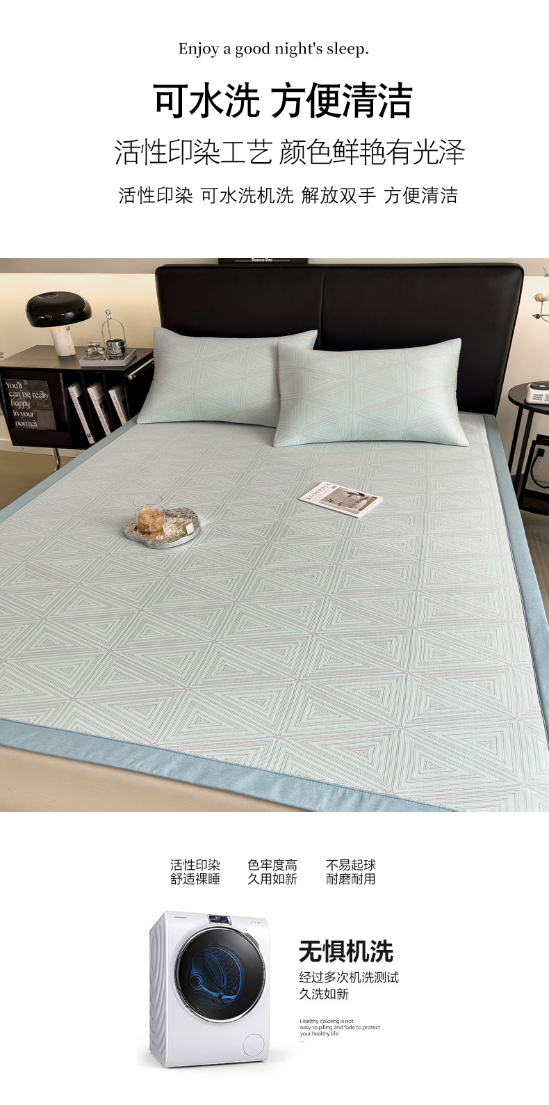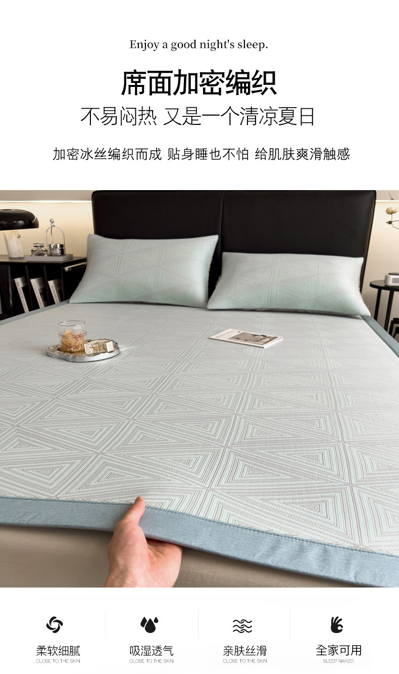 商品名称:慕尚家纺 2025新款1200D提花凉感席 提花席 复古三角蓝