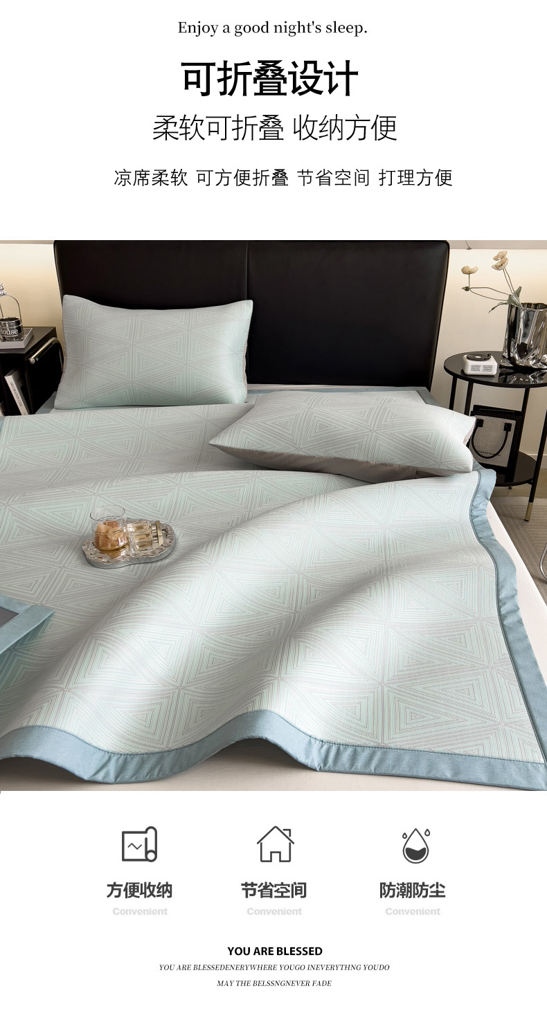 慕尚家纺 2025新款1200D提花凉感席 提花席 复古三角蓝