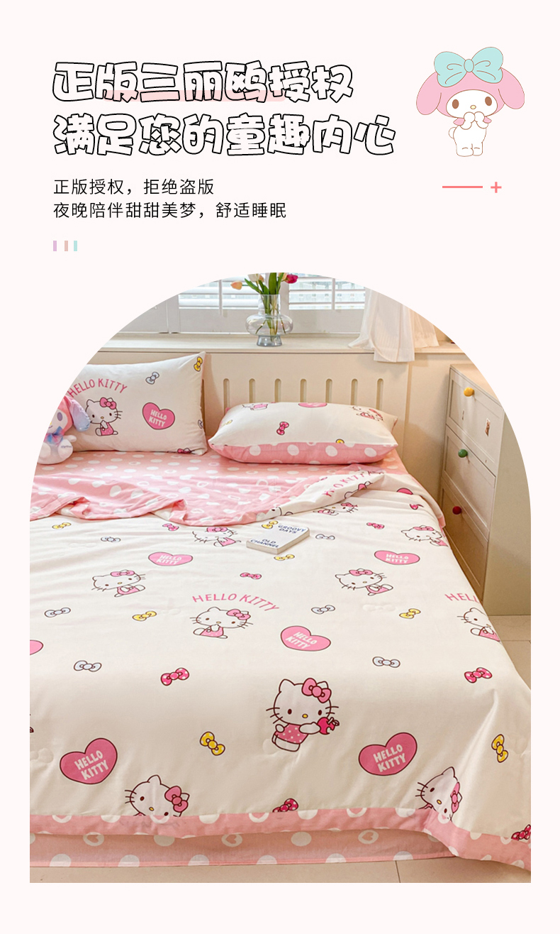 商品名称:博雅 2024新款全棉三丽鸥夏被(要买家秀联系客服) 蝴蝶结KT