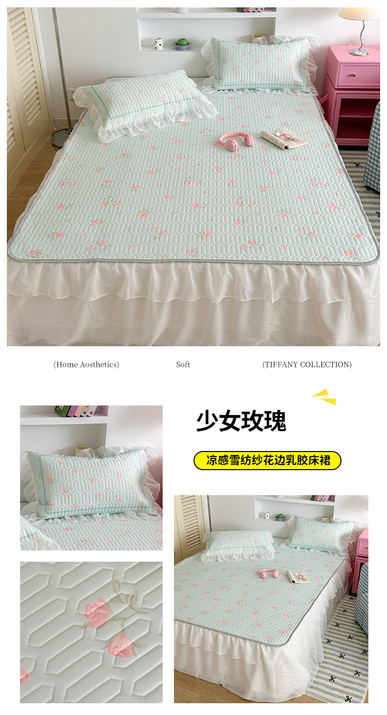 商品名称:昔可 新款床裙款乳胶凉席双层雪纺纱乳胶凉席三件套 少女玫瑰