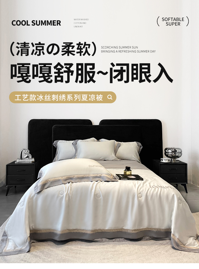 商品名称:(总)优悦生活馆 2024新款工艺款冰丝刺绣夏被-蔚涞