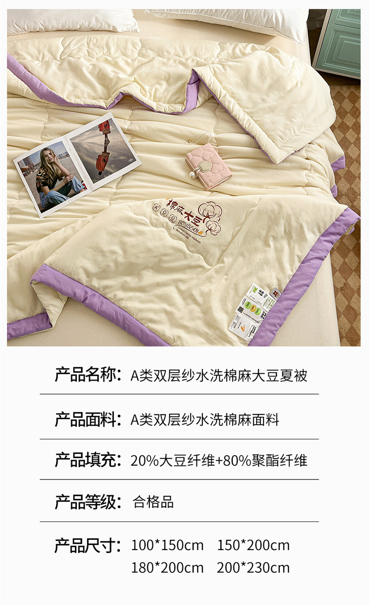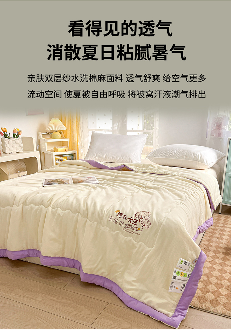 商品名称:默忆 2025新款水洗棉麻夏被夏凉被空调被子大豆被 金米黄