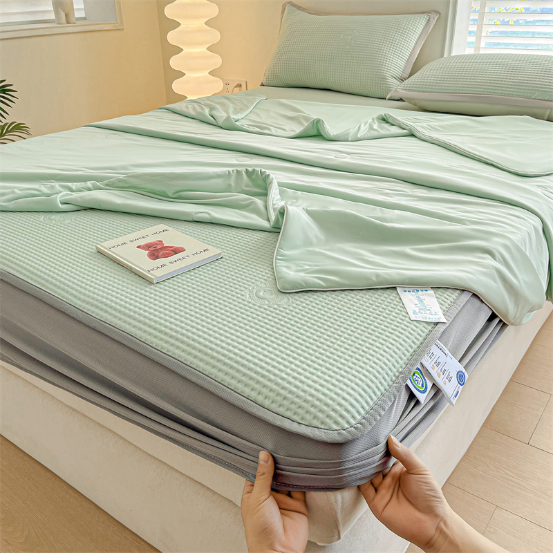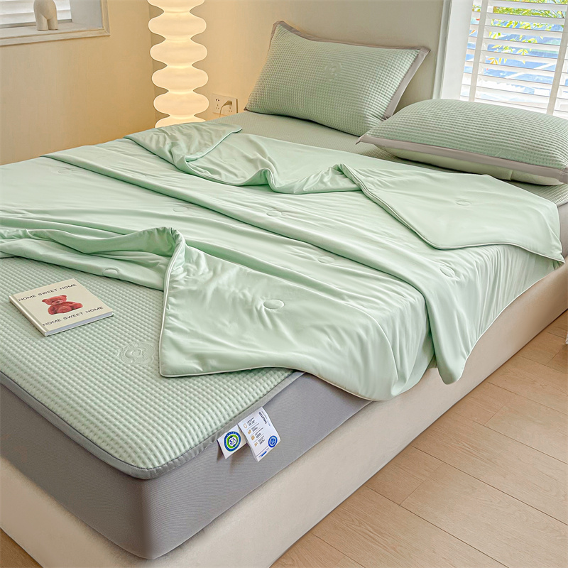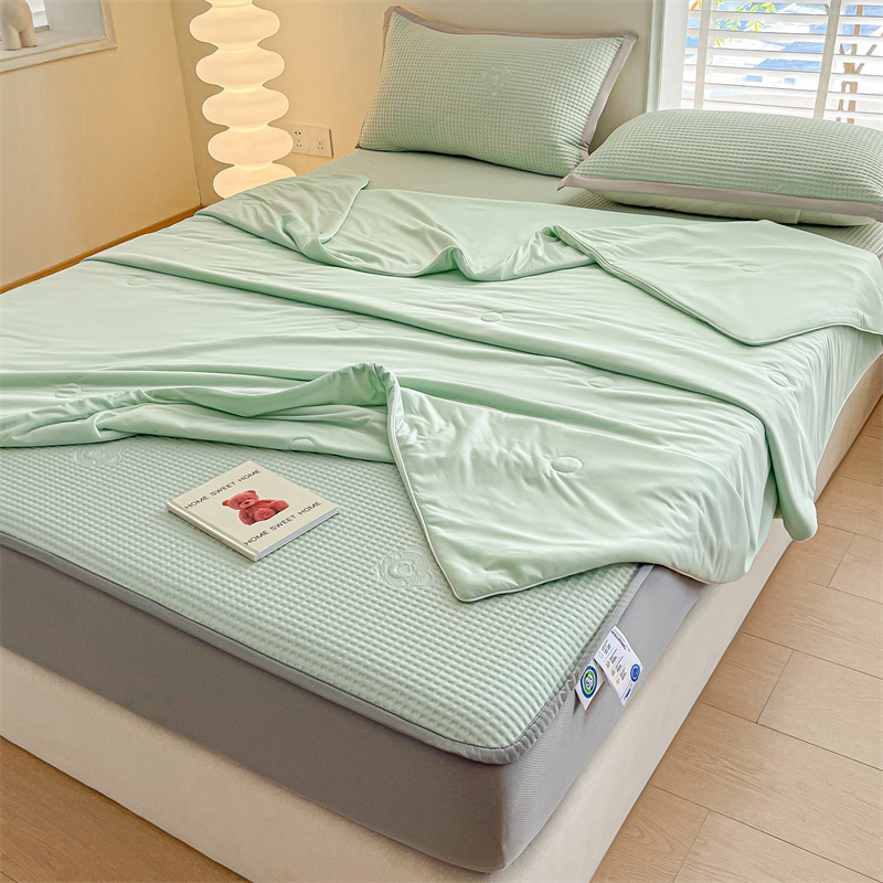 当前位置: 91家纺网 > 商品网购 > 床上用品 > 凉席 > 其他凉席 > 欧邦 新款华夫格冰豆凉感床笠款夏被套件(外贸供货)小熊款-水绿