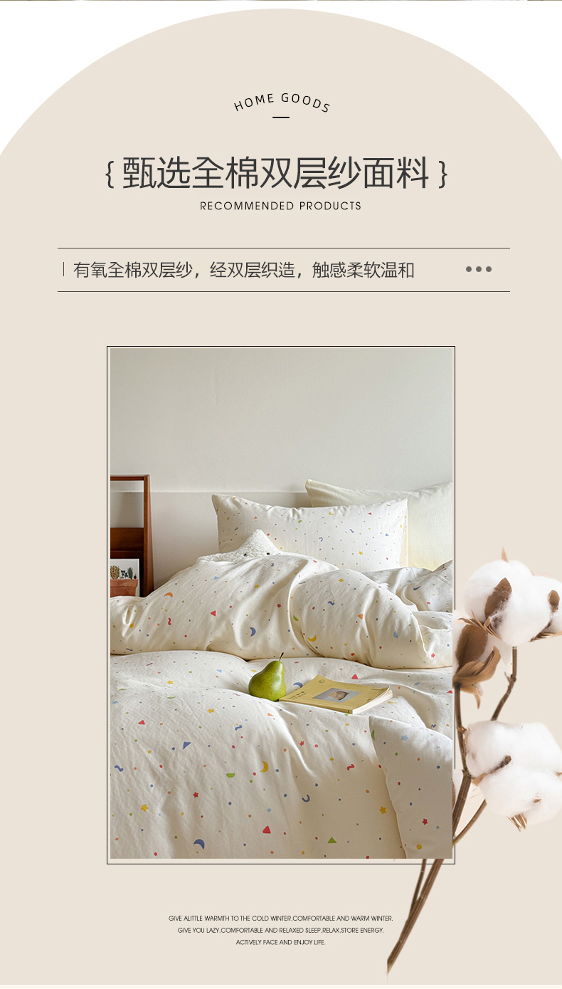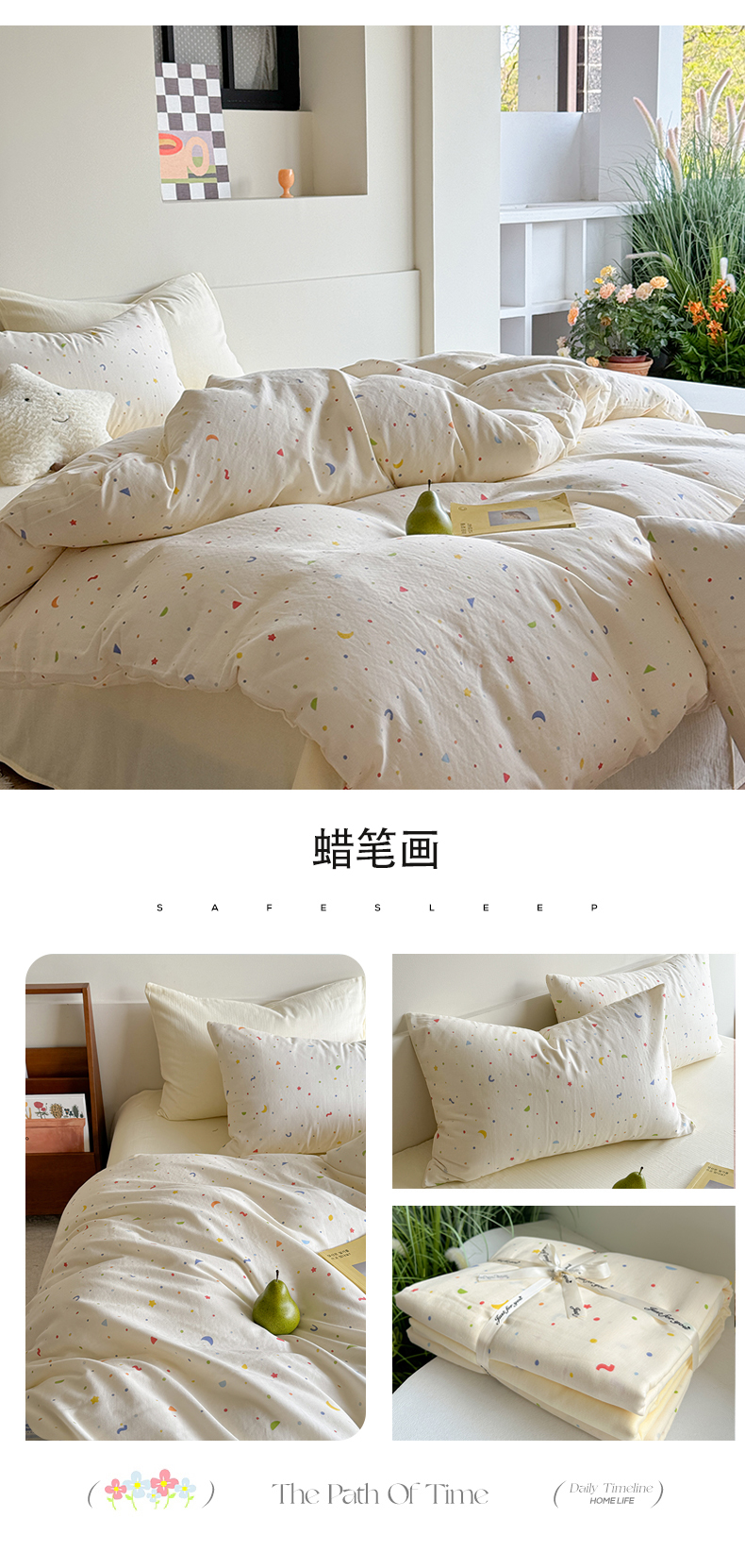当前位置: 91家纺网 > 商品网购 > 床品套件 > 四件套 > 全棉普通四件套 > 麦伦家居 2024新款A类全棉双层纱系列四件套-影棚图 蜡笔画