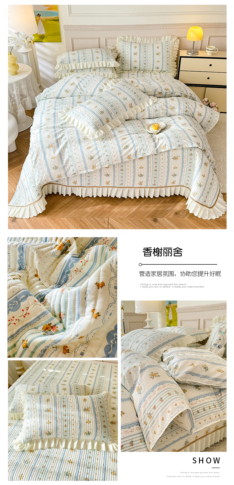 美达家纺 2025新款全棉半夹棉花边床盖四件套 香榭丽舍