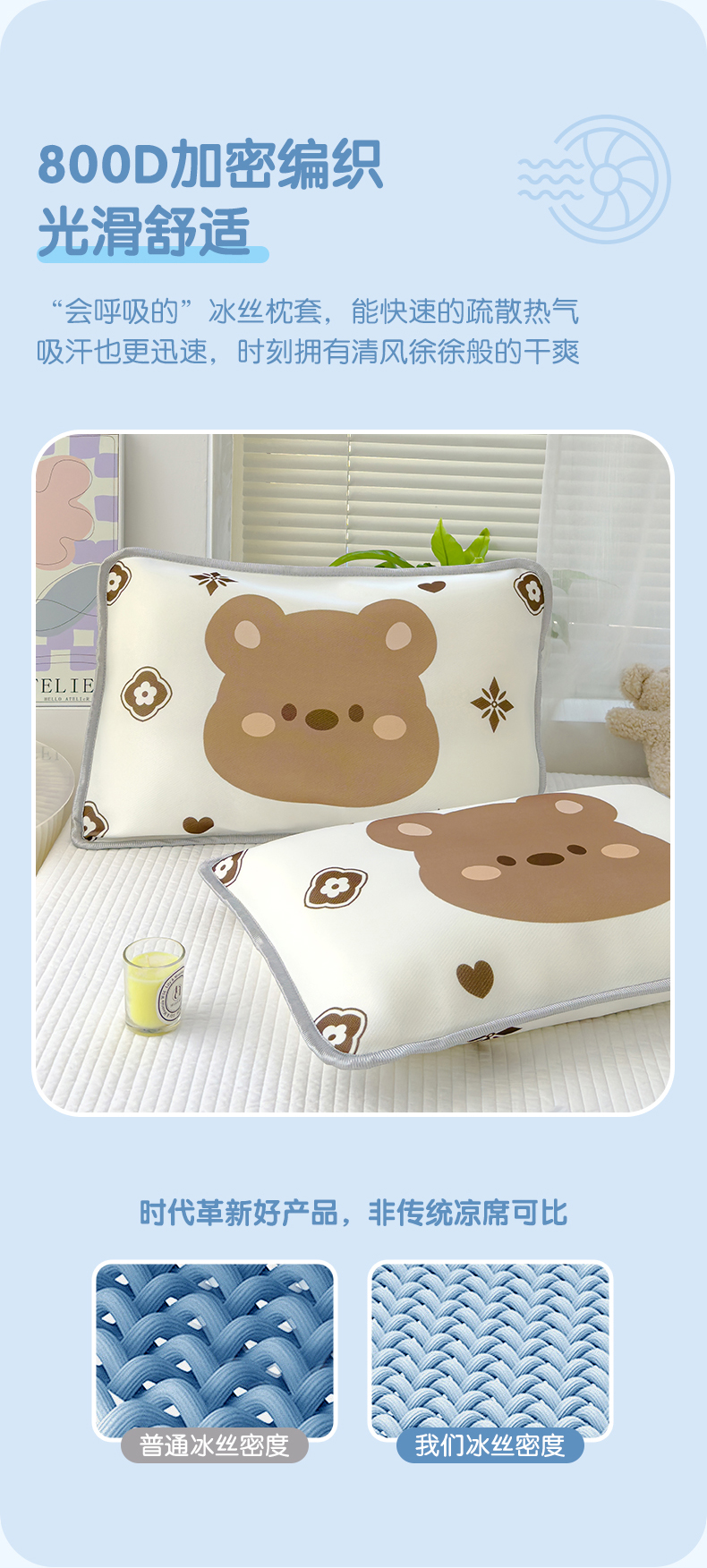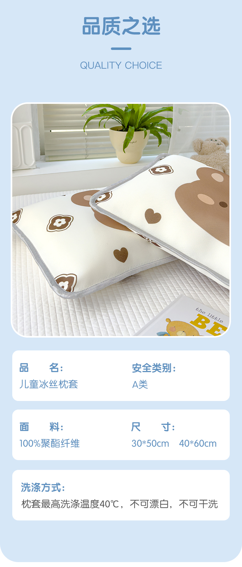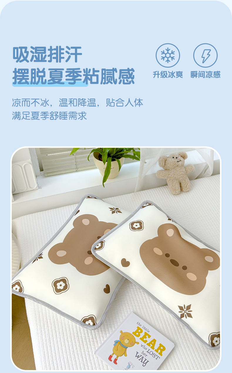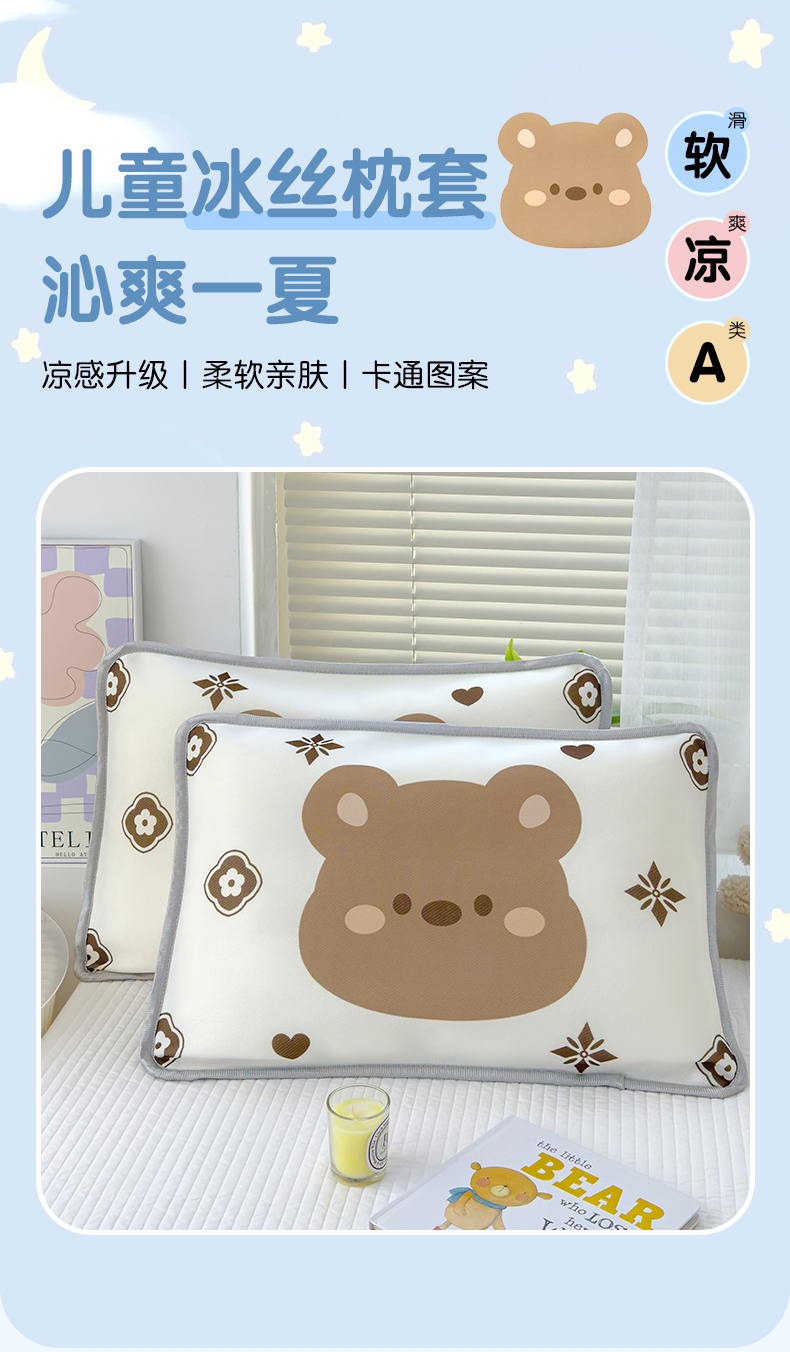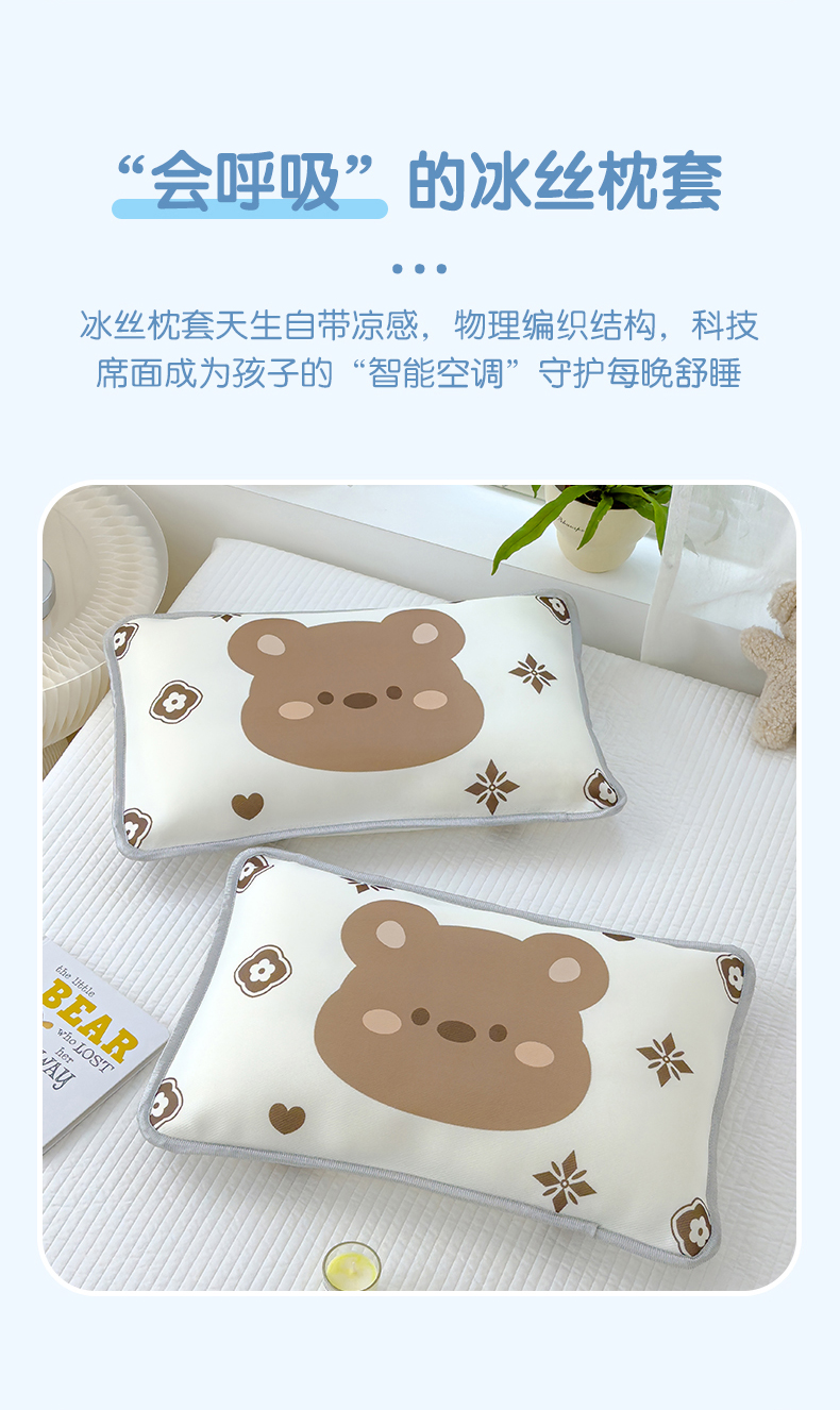 商品名称:丽美人 2024新款儿童冰丝枕套 呼呼熊
