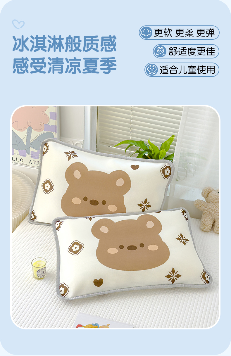 丽美人 2024新款儿童冰丝枕套 呼呼熊