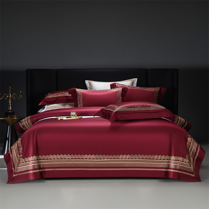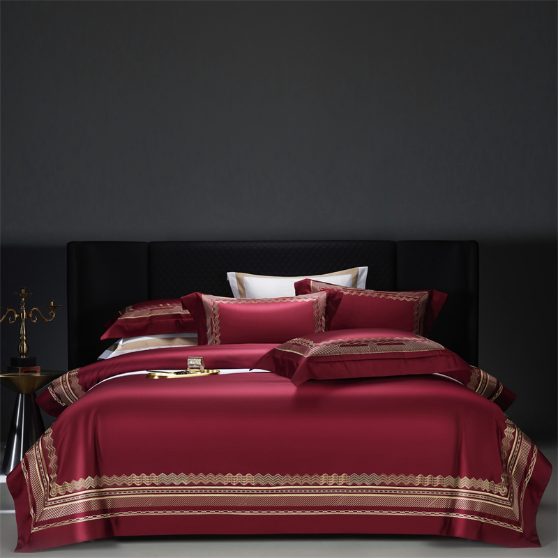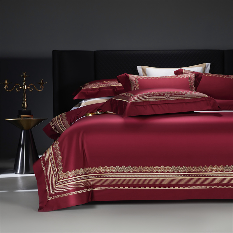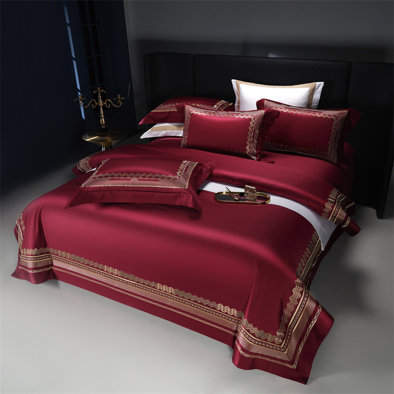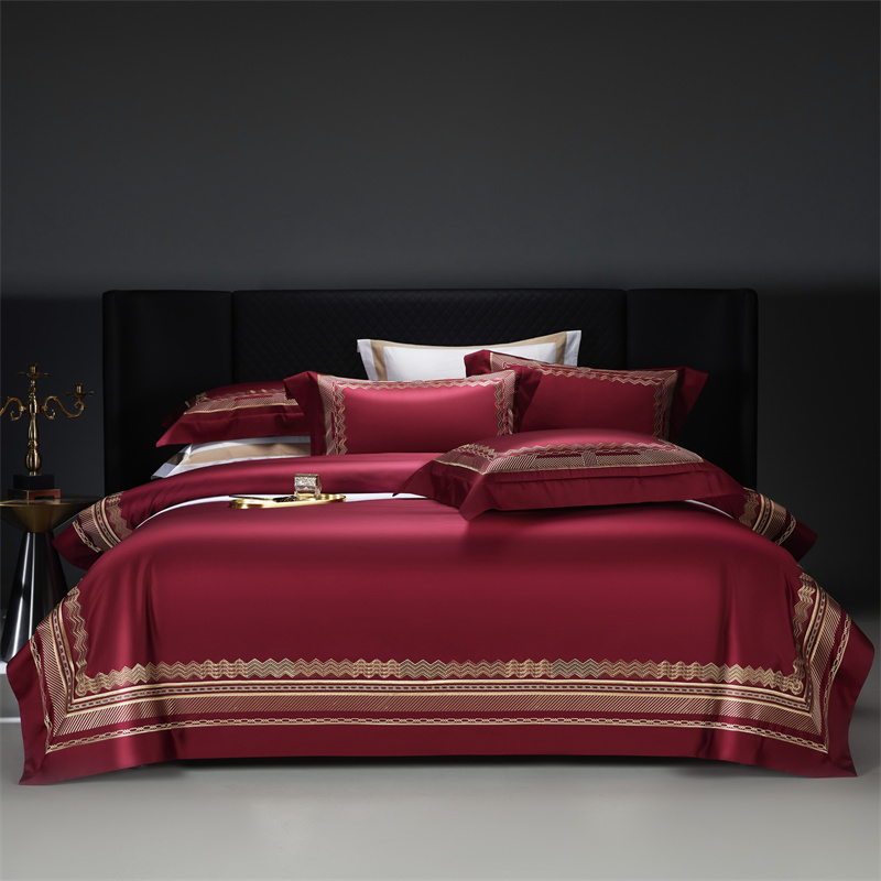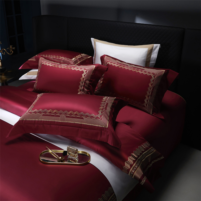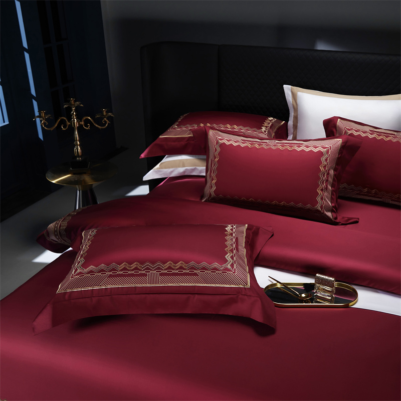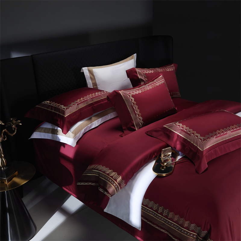 (总)缔缦 2024新款定织新布种S140系列刺绣拼角工艺四件套-威廉皇室,威廉皇室 贵族白,威廉皇室 酒红,威廉皇室 深灰
