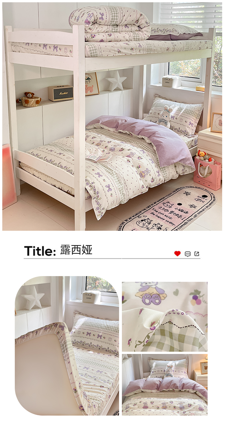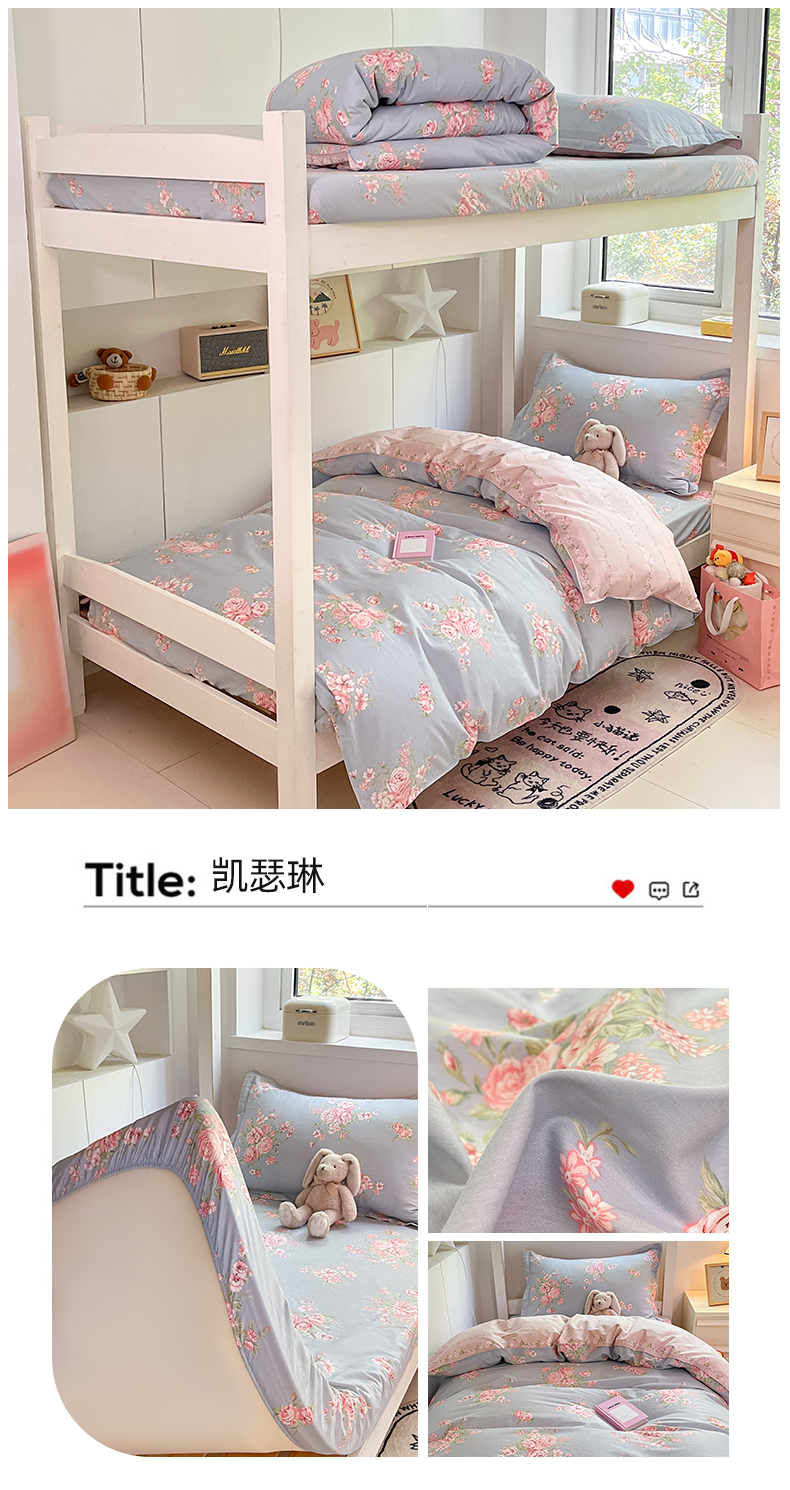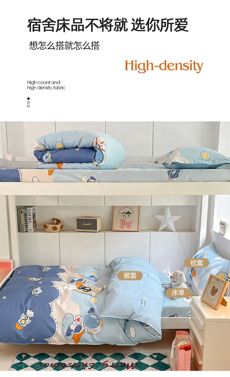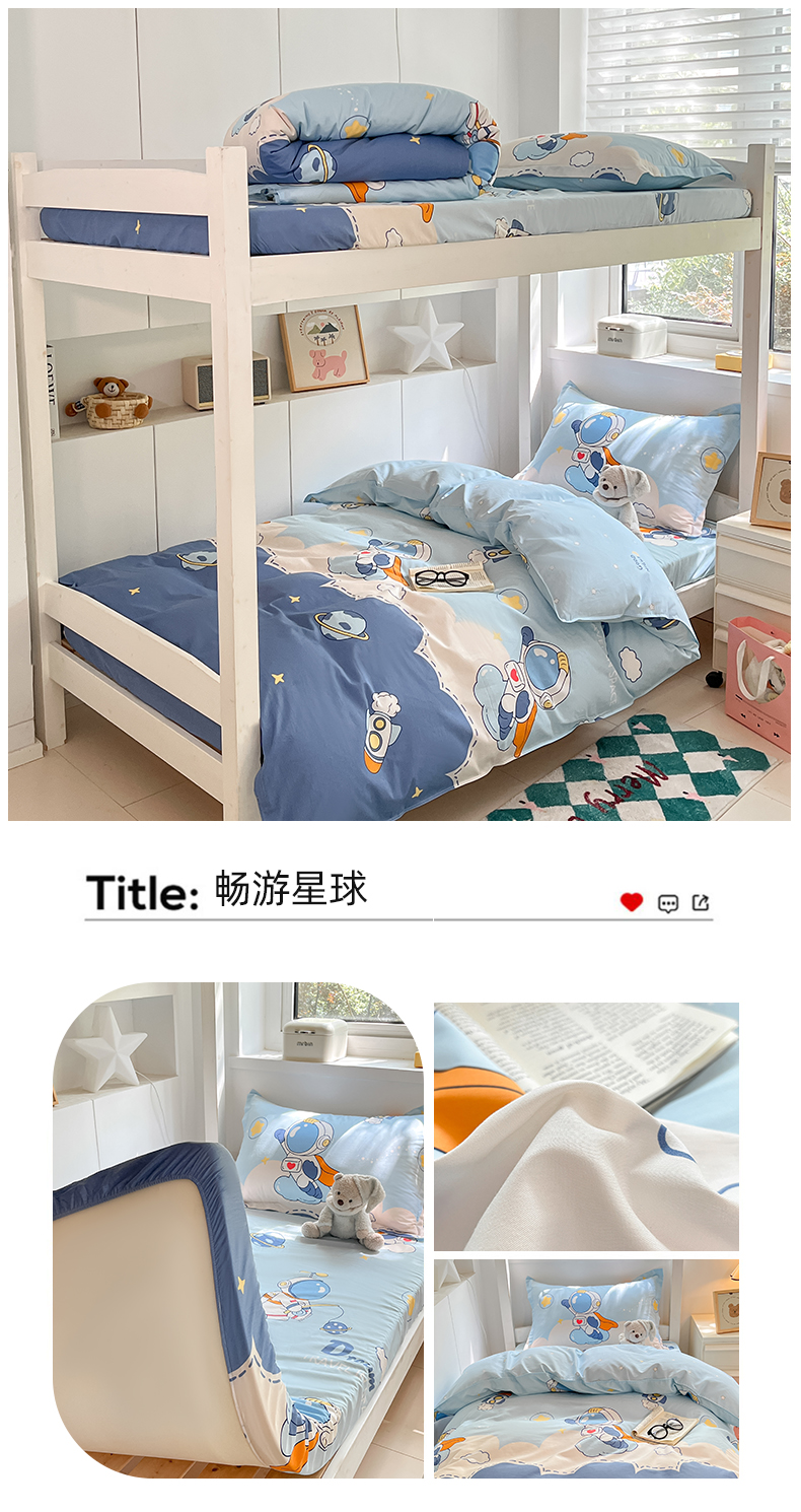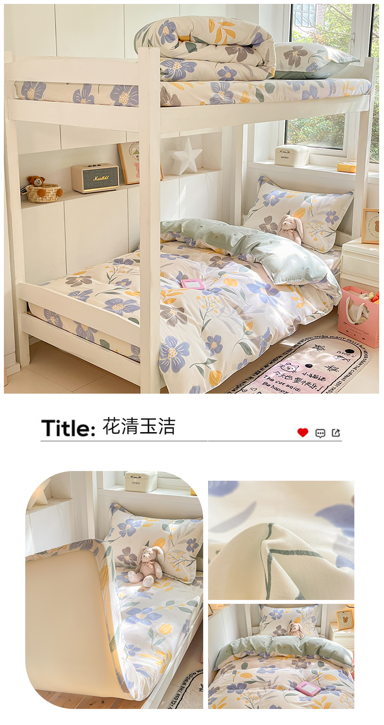 商品名称:(总)2024新款全棉印花三件套学生宿舍床三件套上下铺床单被套
