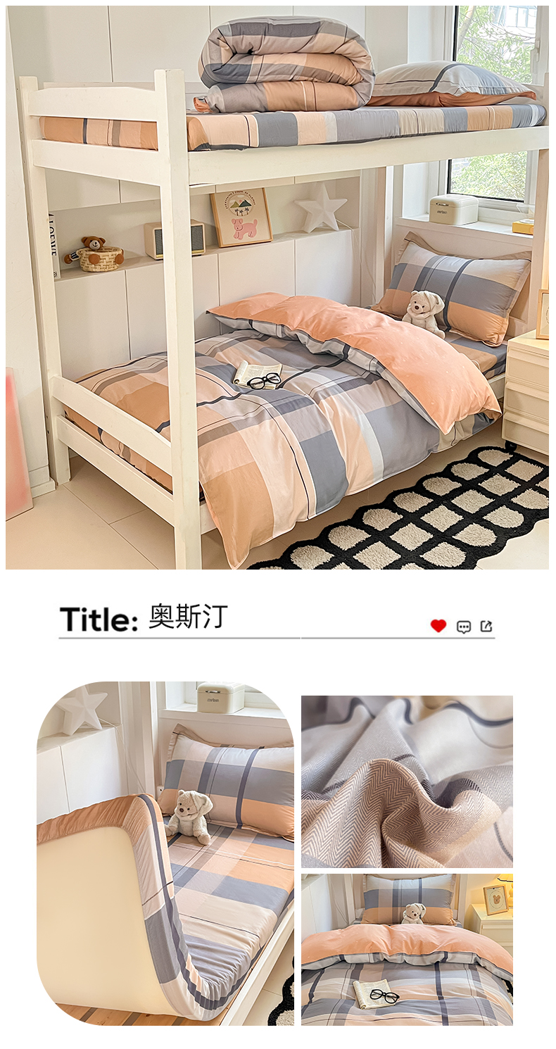 (总)2024新款全棉印花三件套学生宿舍床三件套上下铺床单被套