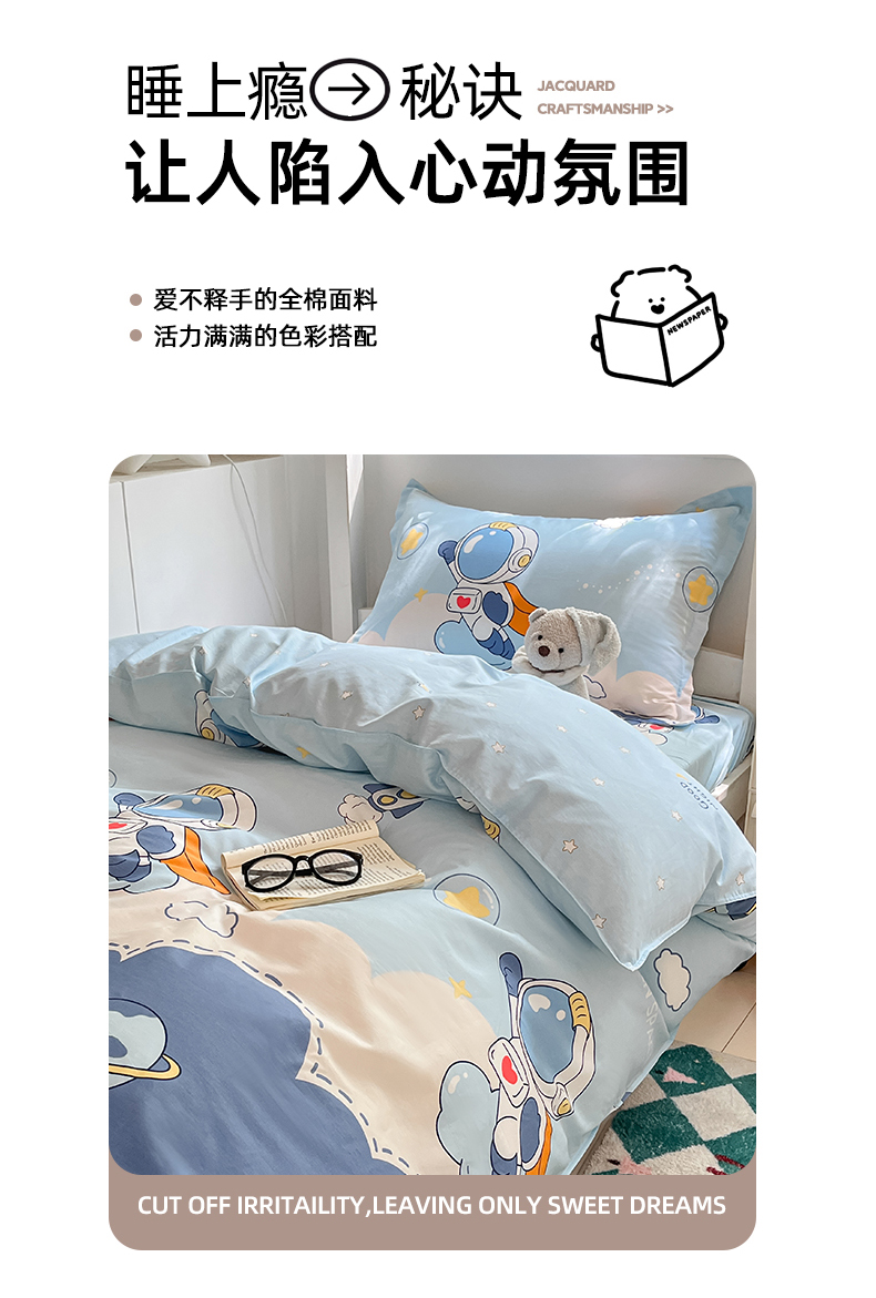 (总)铭成家纺 2025新款全棉印花学生三件套系列(提供买家秀),安睡宝,比星邦尼狗,彩虹格小狗,草莓洋娃娃,宠咖时间,达乐宝贝,弹唱小象,酣睡狗,华歌尔,幻影都市,可爱小咪,浪漫心语,美梦小王子,米拉,摩登熊宝,拿铁米,帕洛迪,普罗旺斯,奇幻宇宙,太空龙,甜酷莓莓,小熊联谊,星空宝贝,星星发夹狗,悠米阁,晕染蓝结,晕染艺术,云韵时空