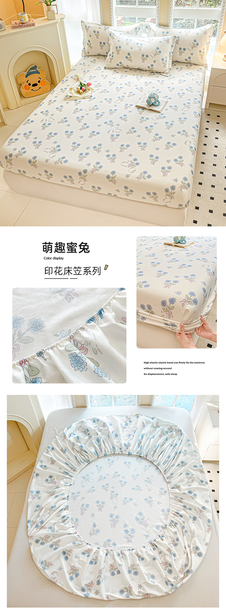 铭成家纺 2024新款新疆棉喷气印花小清新系列单床笠萌趣蜜兔