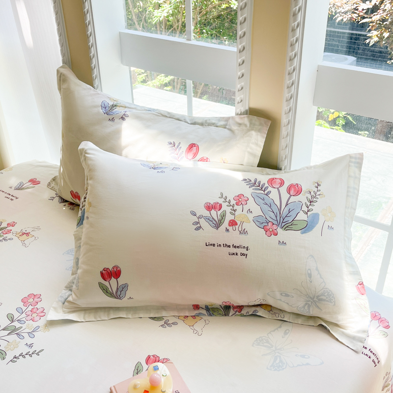 铭成家纺 2024新款新疆棉喷气印花小清新系列单品枕套幻蝶兔