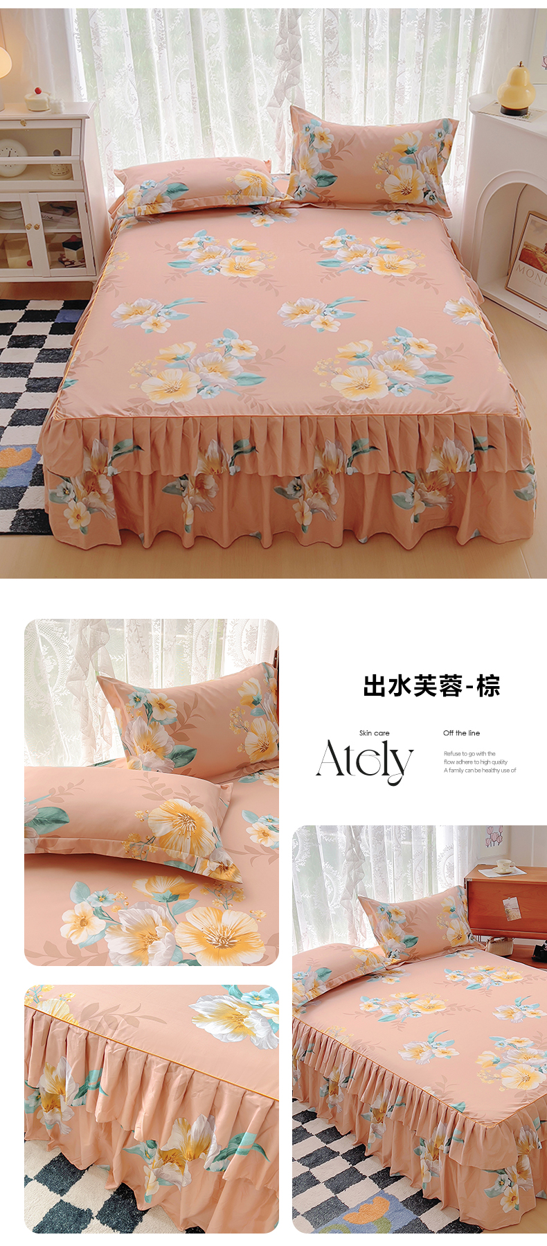 • 91家纺网 家纺一手货源 找家纺 易辰美 2024新款芦荟棉床裙三件套 出水芙蓉-棕