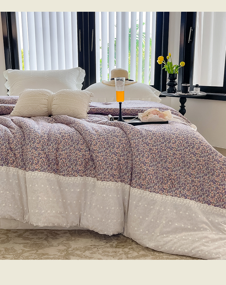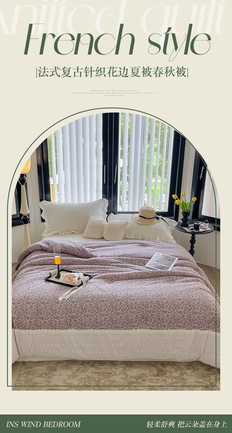 商品名称:奈萝家纺 2024新款法式花边款针织夏被春秋被可机洗 紫梦