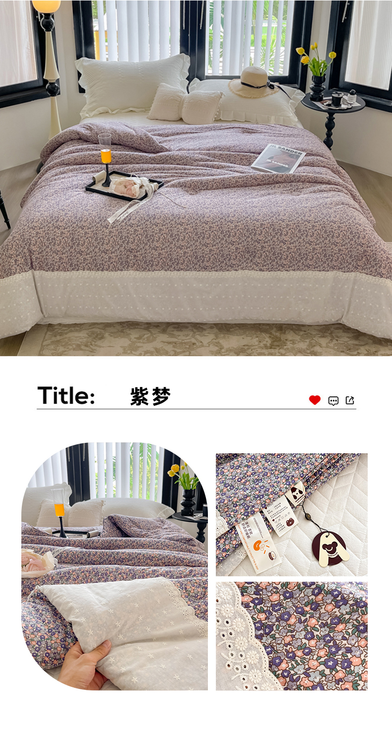 (总)奈萝家纺 2025新款全棉纯棉床盖三件套可配同款四季被同款被套,草莓酱,芳草恋,蝴蝶结,极光之星,沫婉,沐辰花灰,沐辰花绿,千野绿,千野紫,清幽粉,薇语梦,夏梦,小小爱心,小小花园,心悦,樱桃可可,稚嫩蔷薇,紫悦