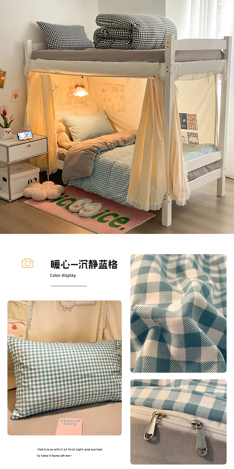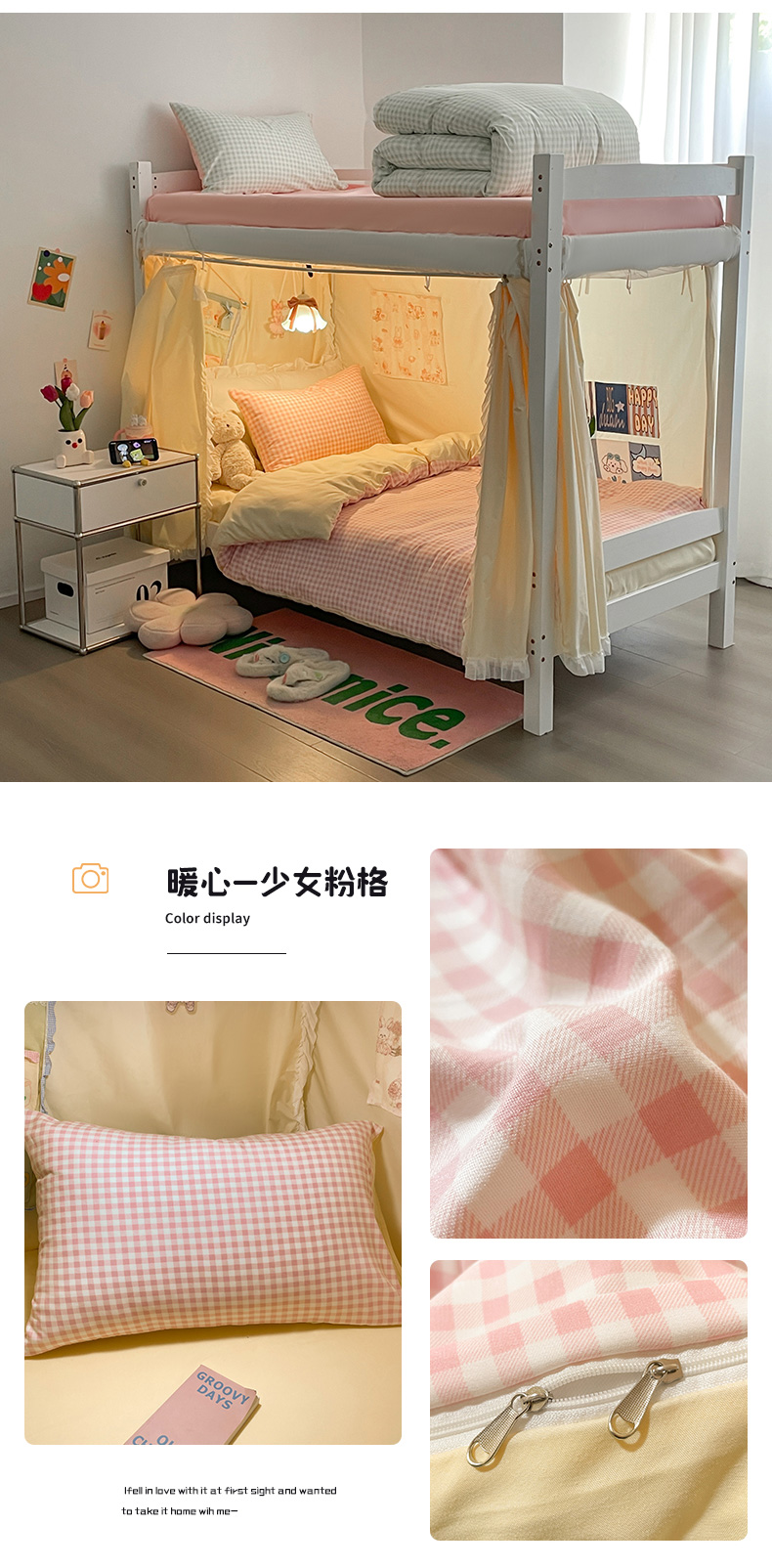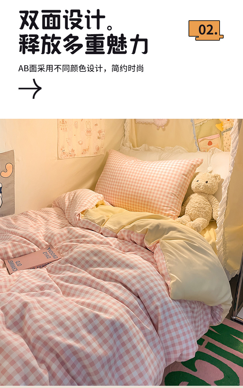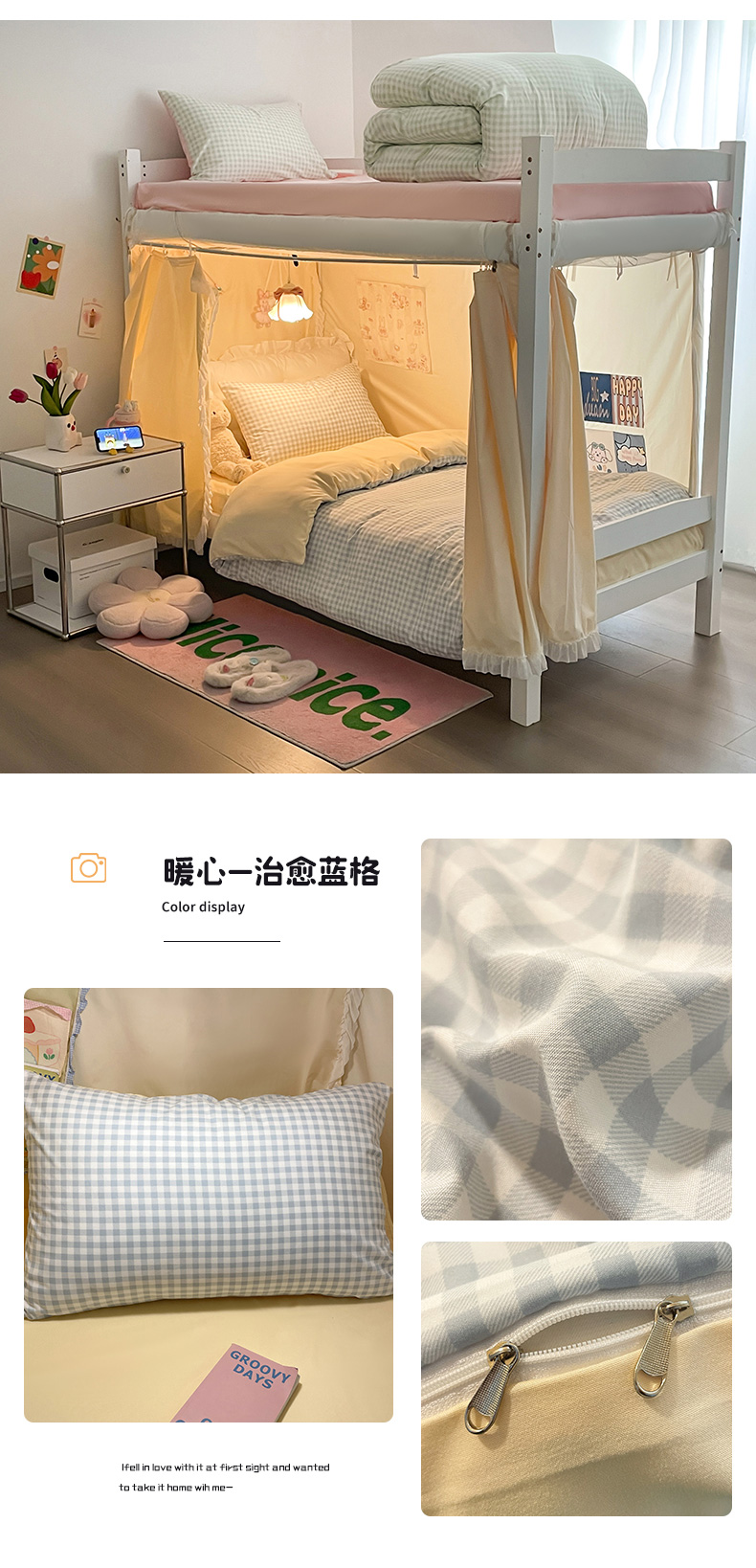 商品名称:(总)眠帛家居 2024新款A类学生三件套奶油风小清新毛巾绣暖心系列水洗棉床上用品四件套图2