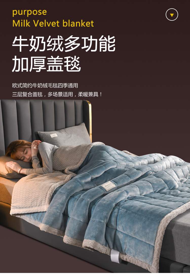 (总)热卖爆款·加厚三层夹棉牛奶绒毛毯贝贝绒盖毯秋冬季保暖午睡法莱绒毛毯