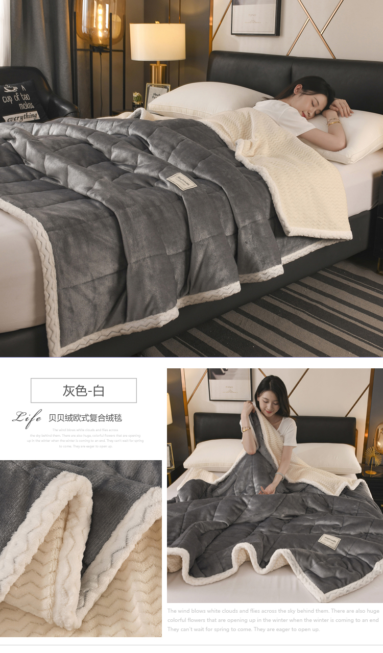 大牛家居·加厚三层夹棉毯牛奶绒毛毯贝贝绒盖毯冬季保暖午睡法莱绒毯可机洗,贝贝绒-灰蓝-白,贝贝绒-灰蓝-灰,贝贝绒-果绿-白,贝贝绒-果绿-灰,贝贝绒-灰色-白,贝贝绒-灰色-灰,贝贝绒-豆沙-白,贝贝绒-豆沙-灰,贝贝绒-粉色-白,贝贝绒-粉色-灰,贝贝绒-桔黄-白,贝贝绒-藏青-白