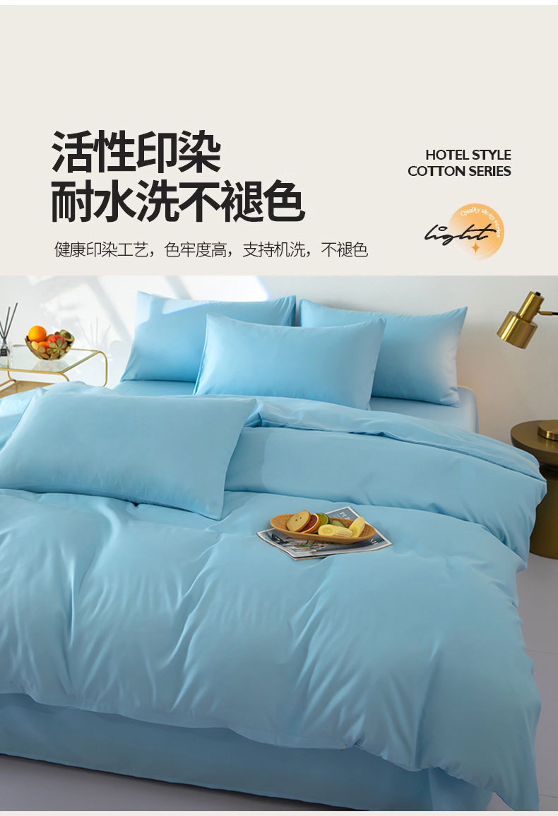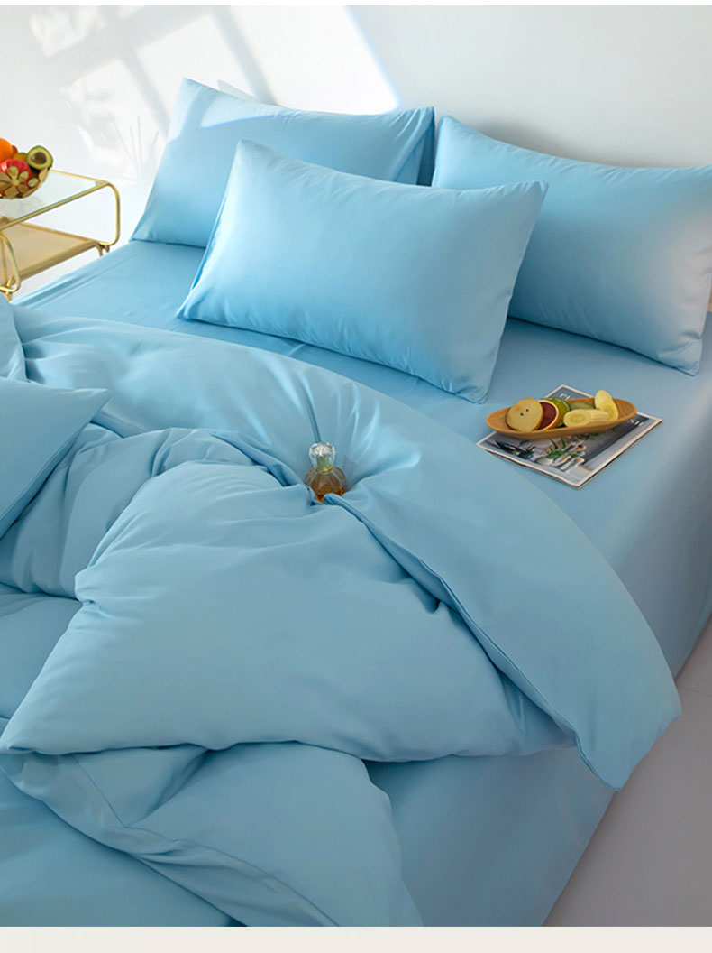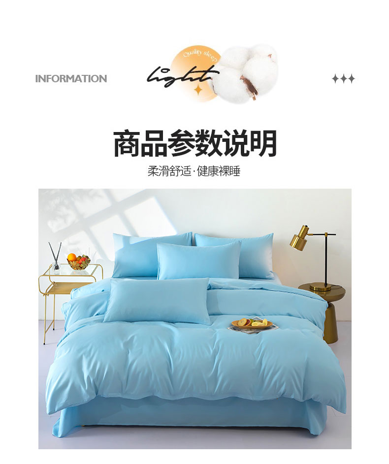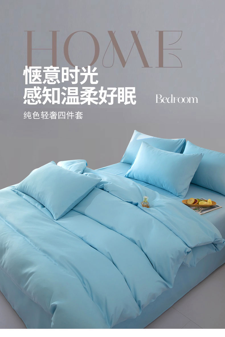 商品名称:梦莱家纺 2024新款亲肤磨毛纯色拼色轻奢系列四件套 天蓝