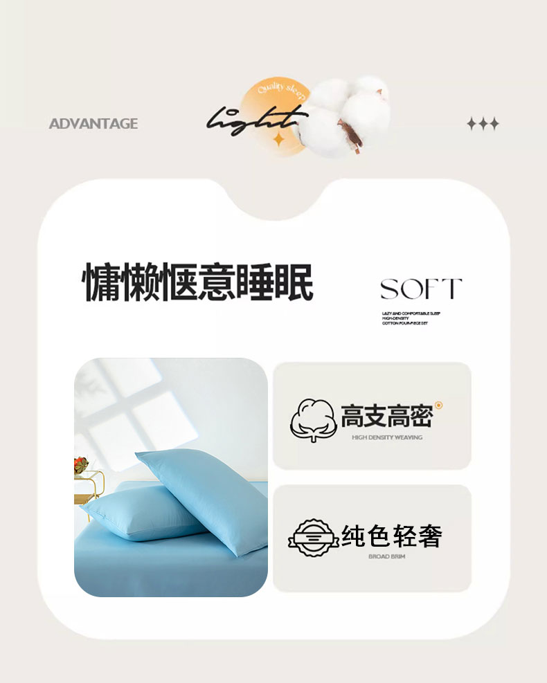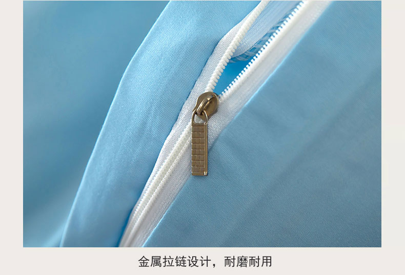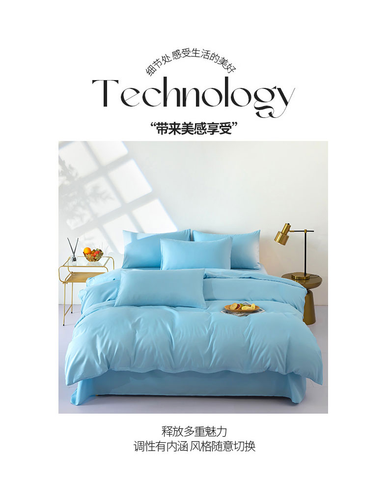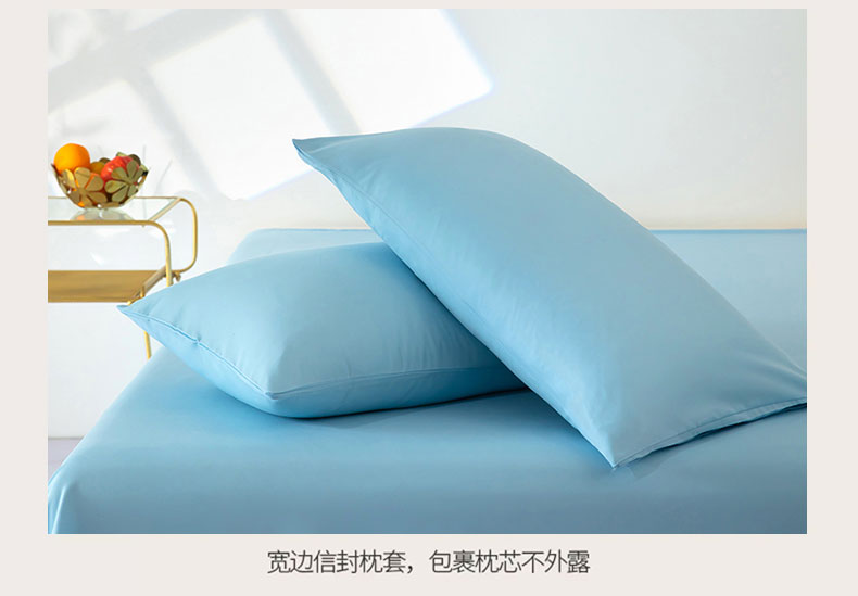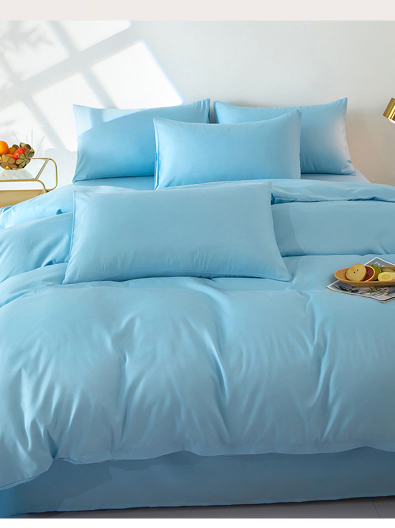 商品名称:梦莱家纺 2024新款亲肤磨毛纯色拼色轻奢系列四件套 天蓝