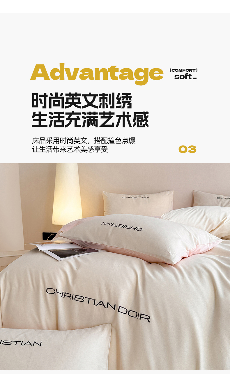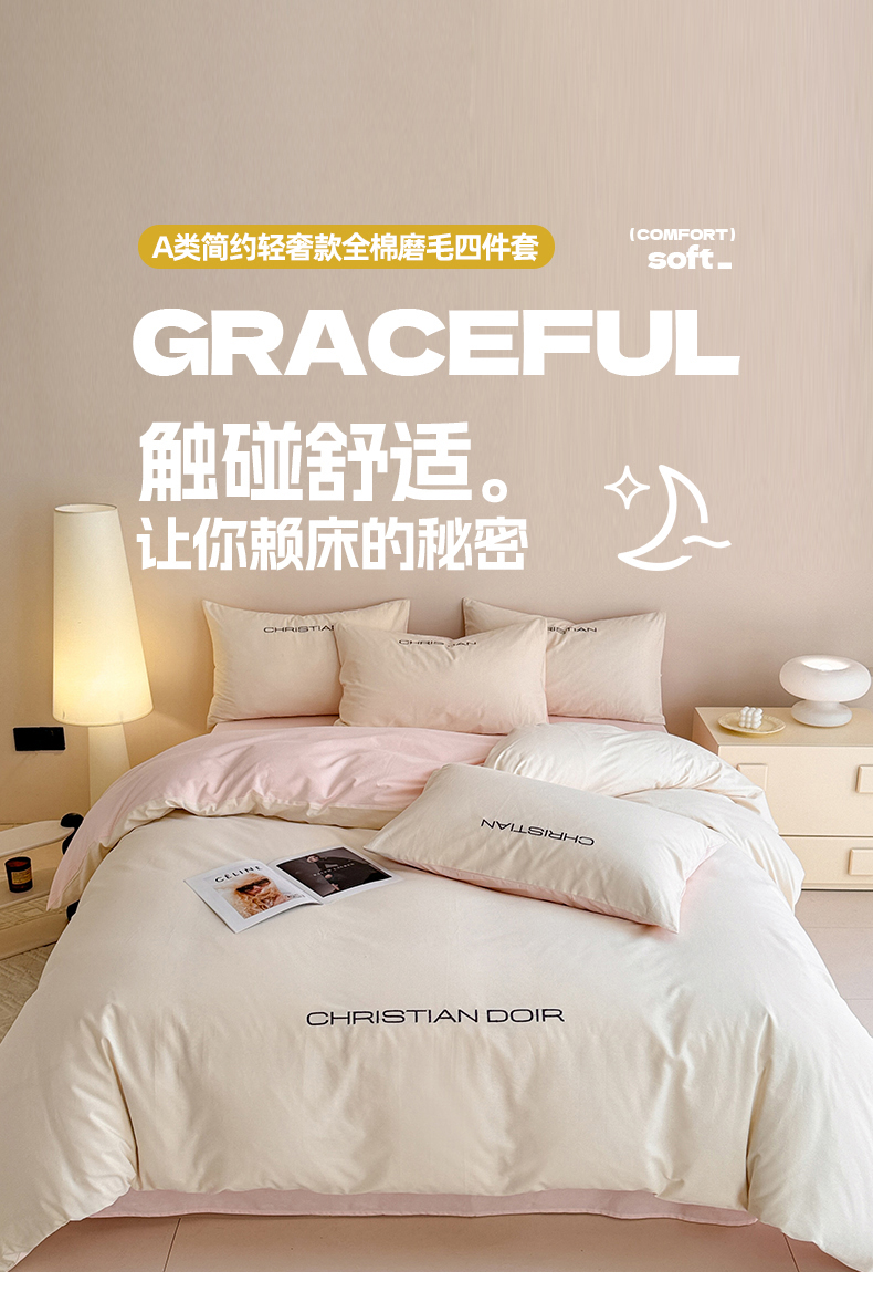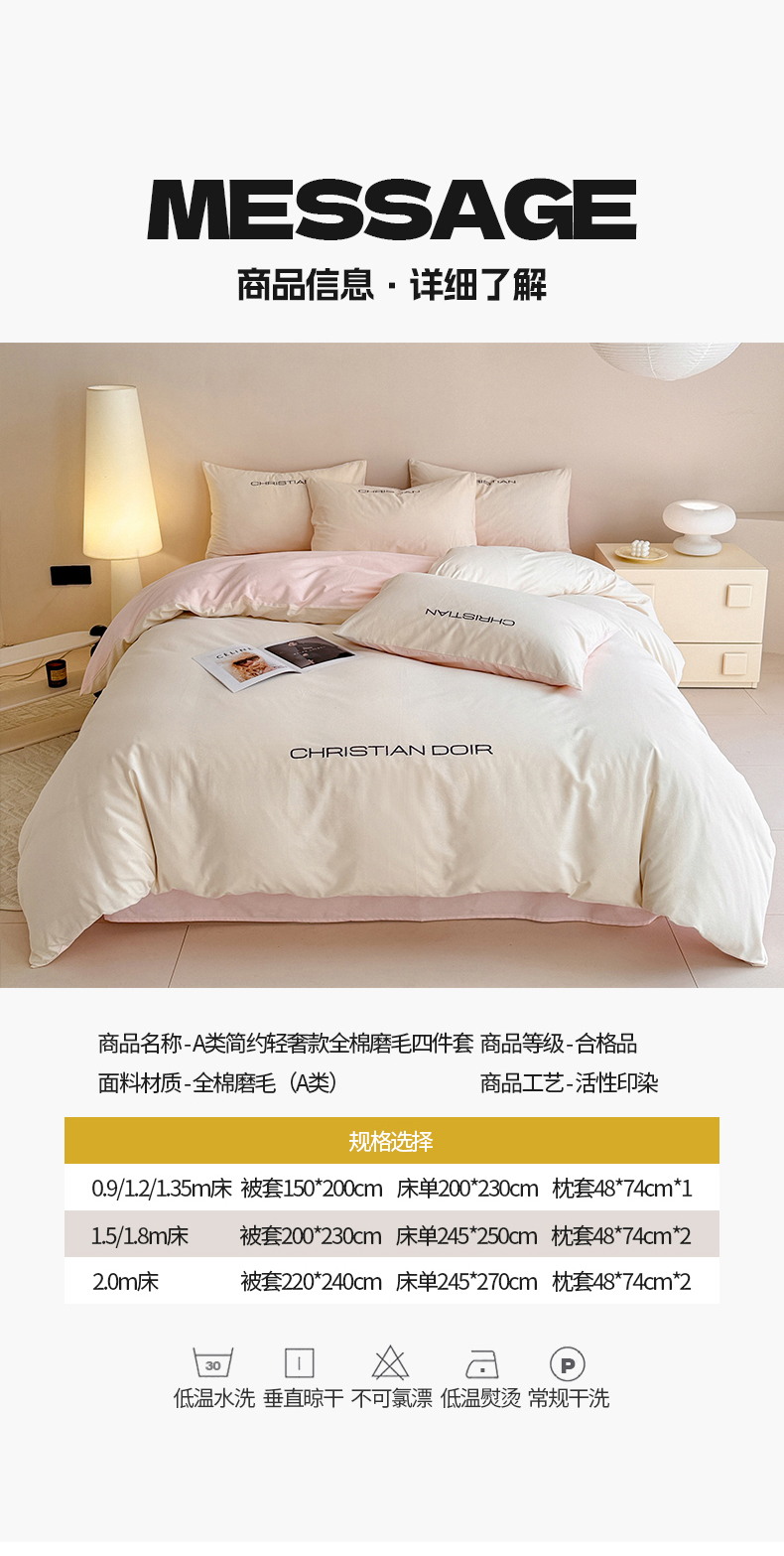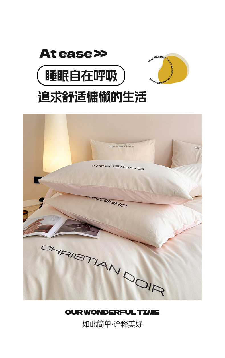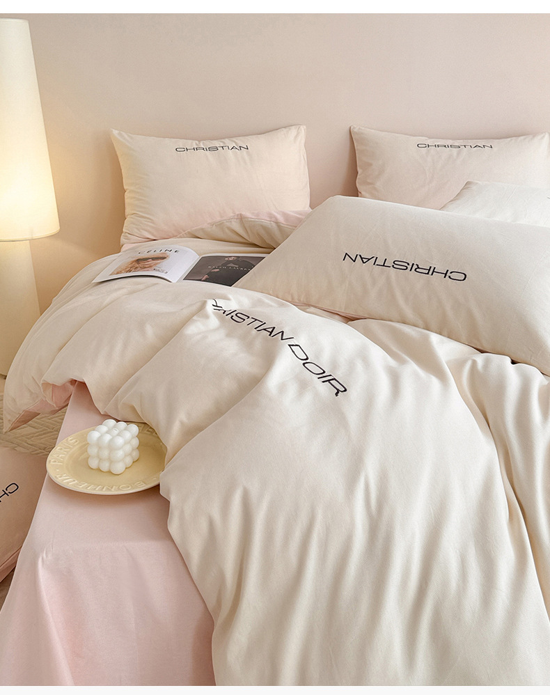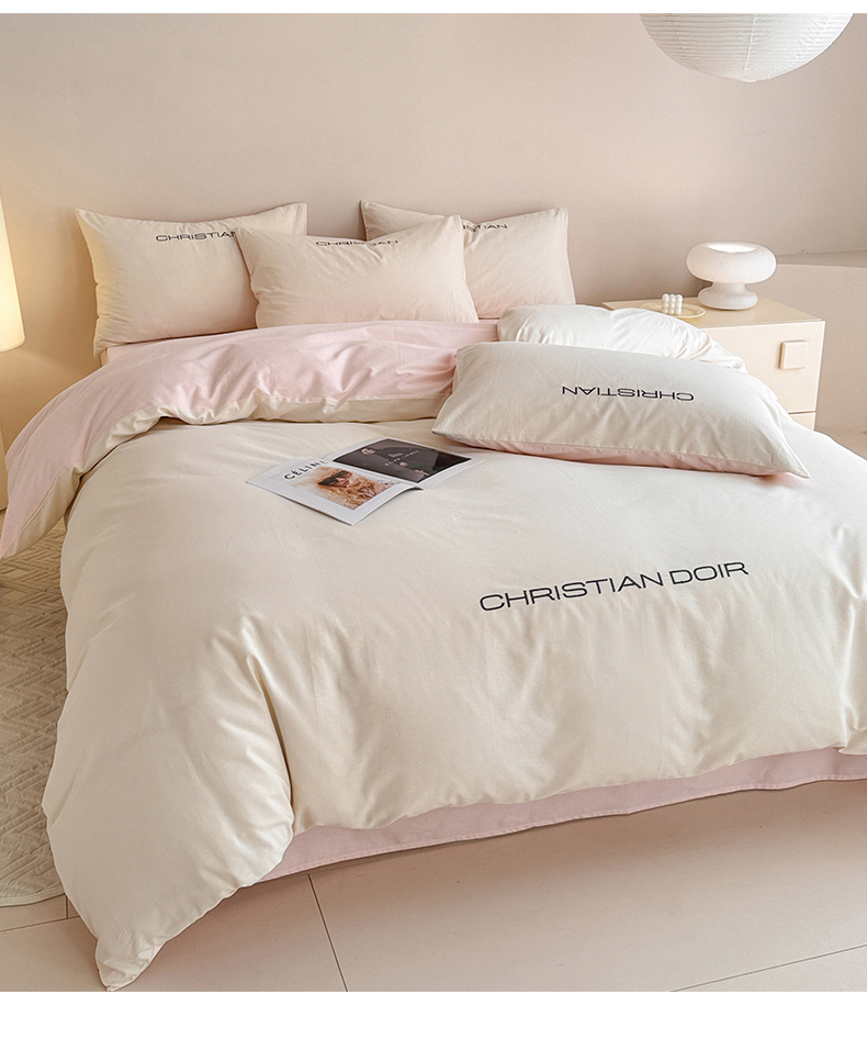 当前位置: 91家纺网 > 商品网购 > 床品套件 > 四件套 > 全棉普通四件套 > 懒猫家纺 2024新款简约轻奢款全棉磨毛绣花四件套 象牙白-粉