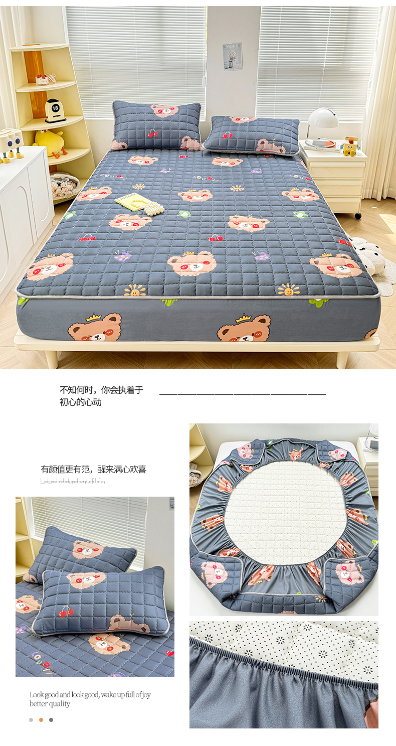 商品名称:花言狐语 2025新款水洗棉夹棉加厚床笠(印花系列)-大床 灰熊
