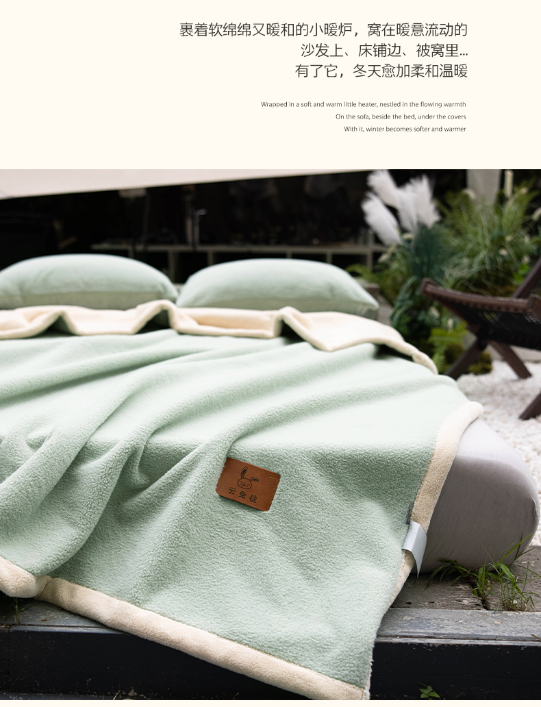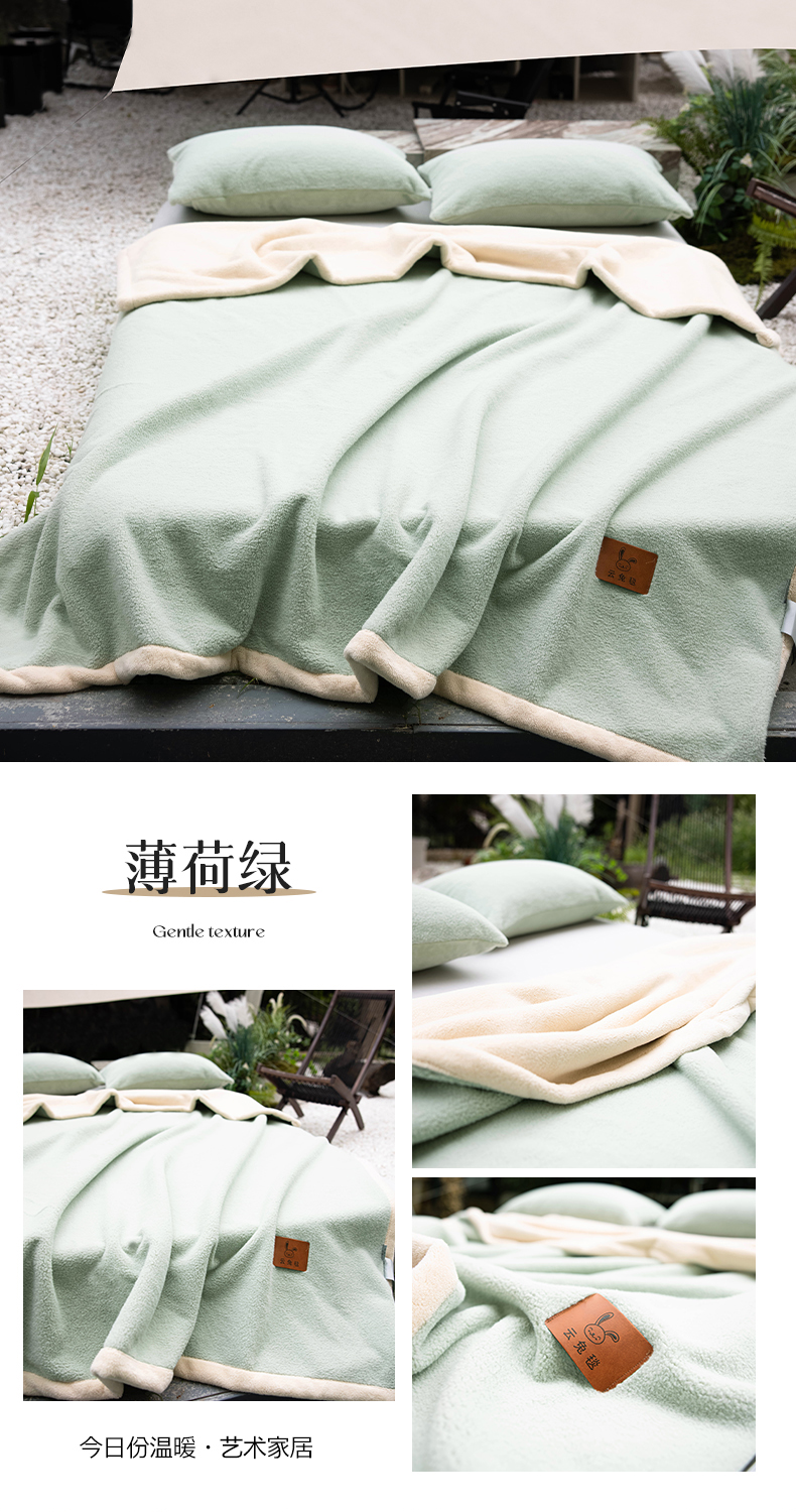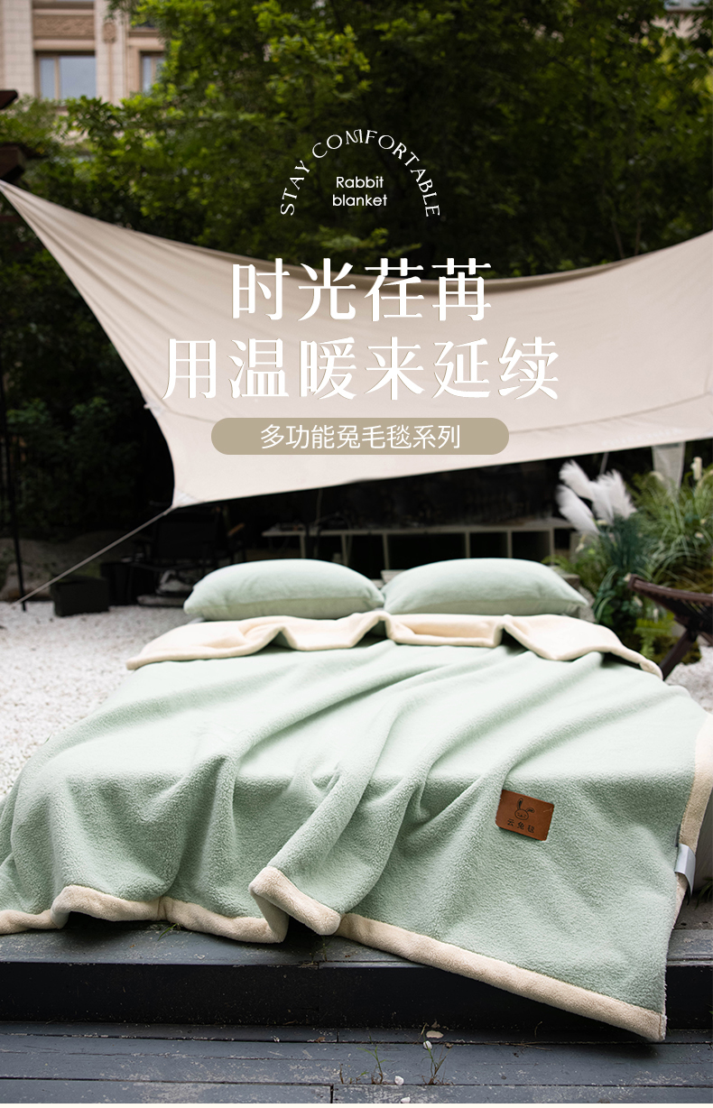 商品名称:美洲琳 2025新款多功能兔毛毯云兔毯休闲毯盖毯 薄荷绿
