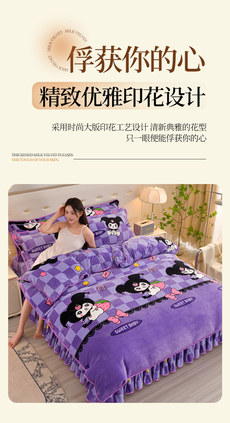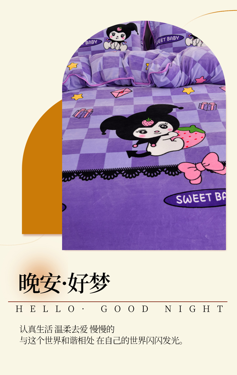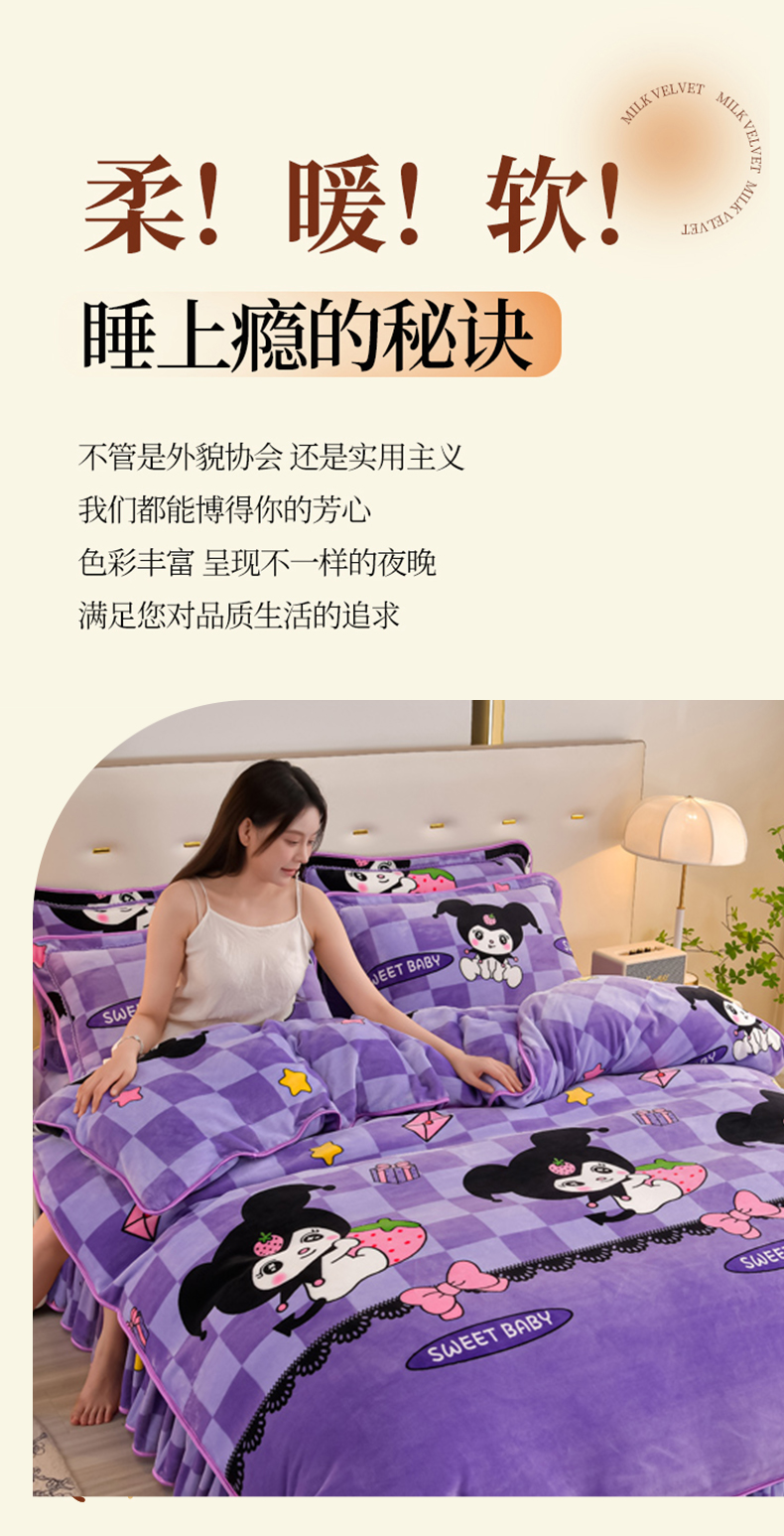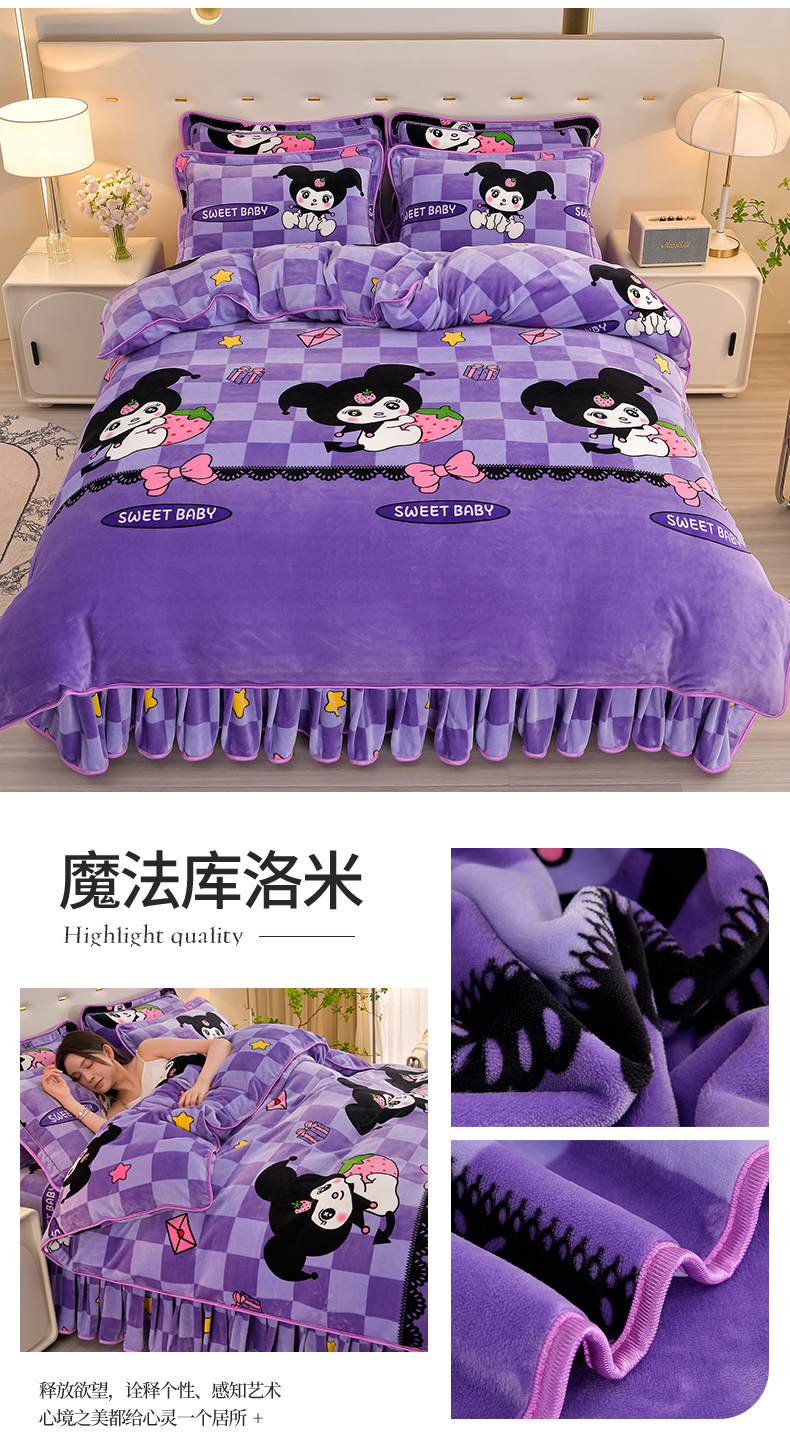 商品名称:雨洋2025新款加厚保暖8.5斤牛奶绒金貂婴儿绒四件套 魔法库洛米