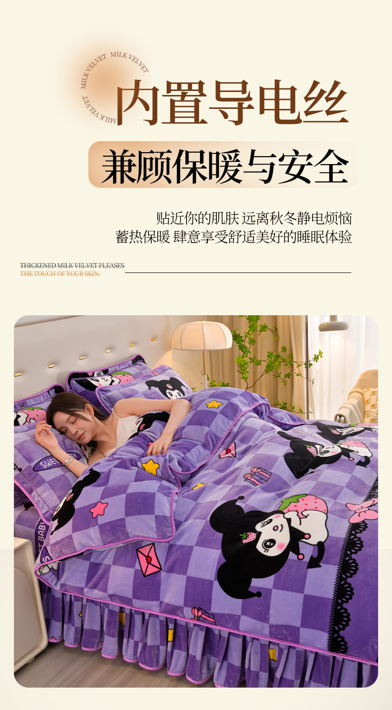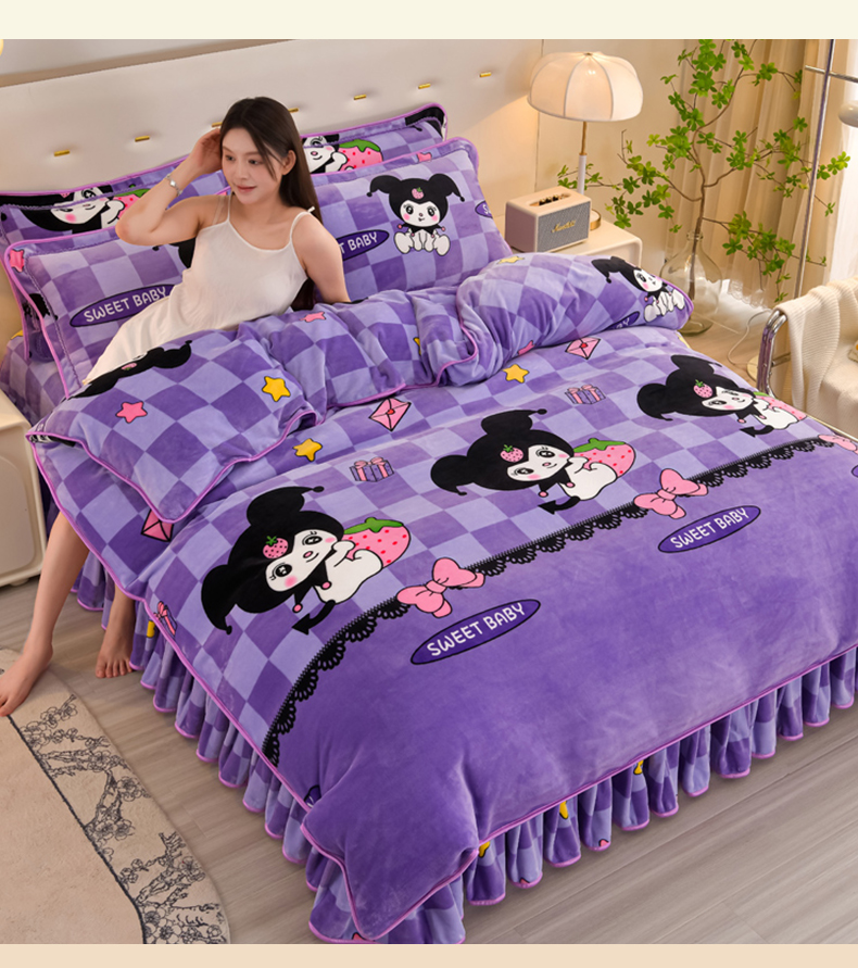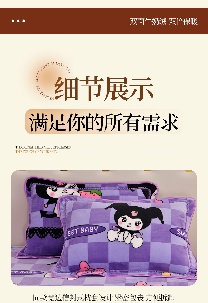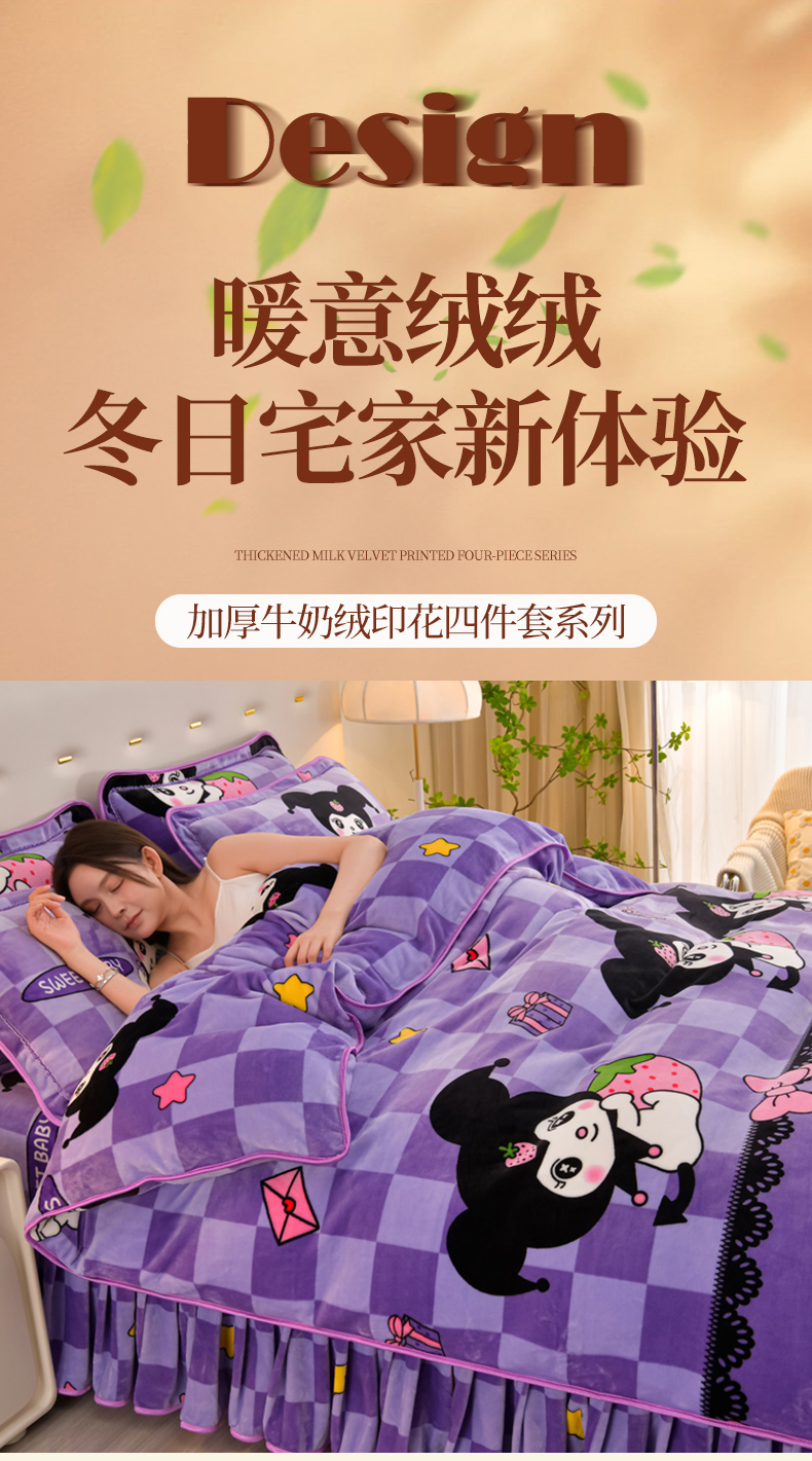 商品名称:雨洋2025新款加厚保暖8.5斤牛奶绒金貂婴儿绒四件套 魔法库洛米