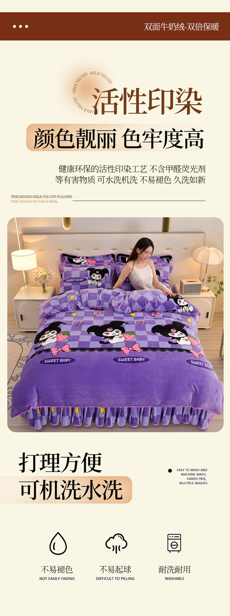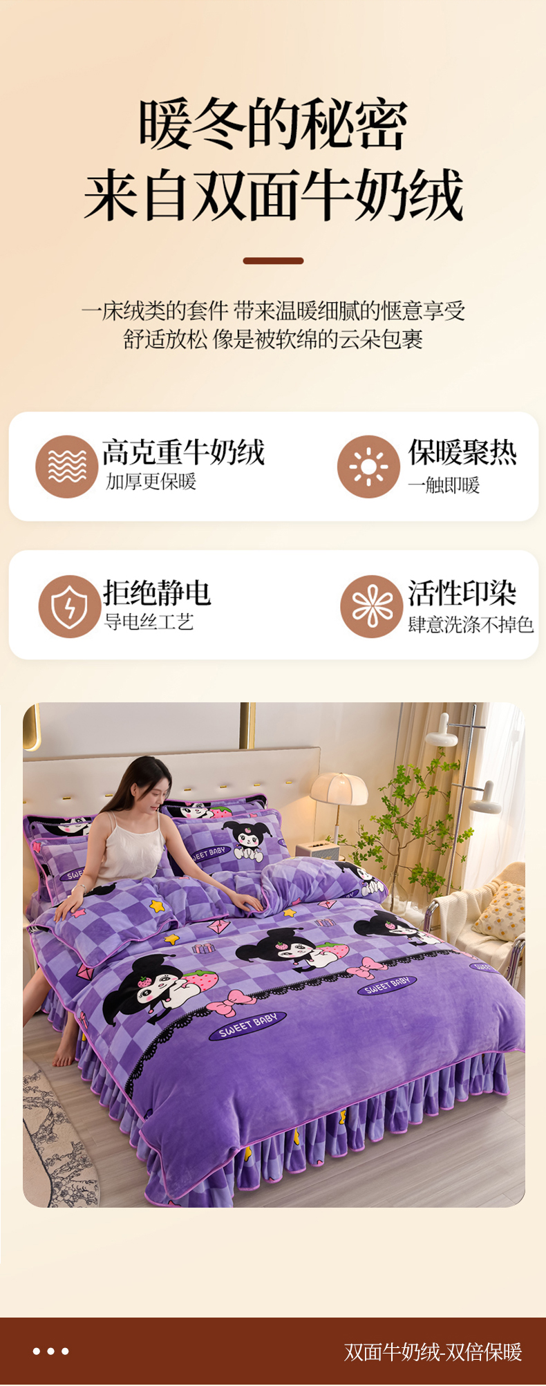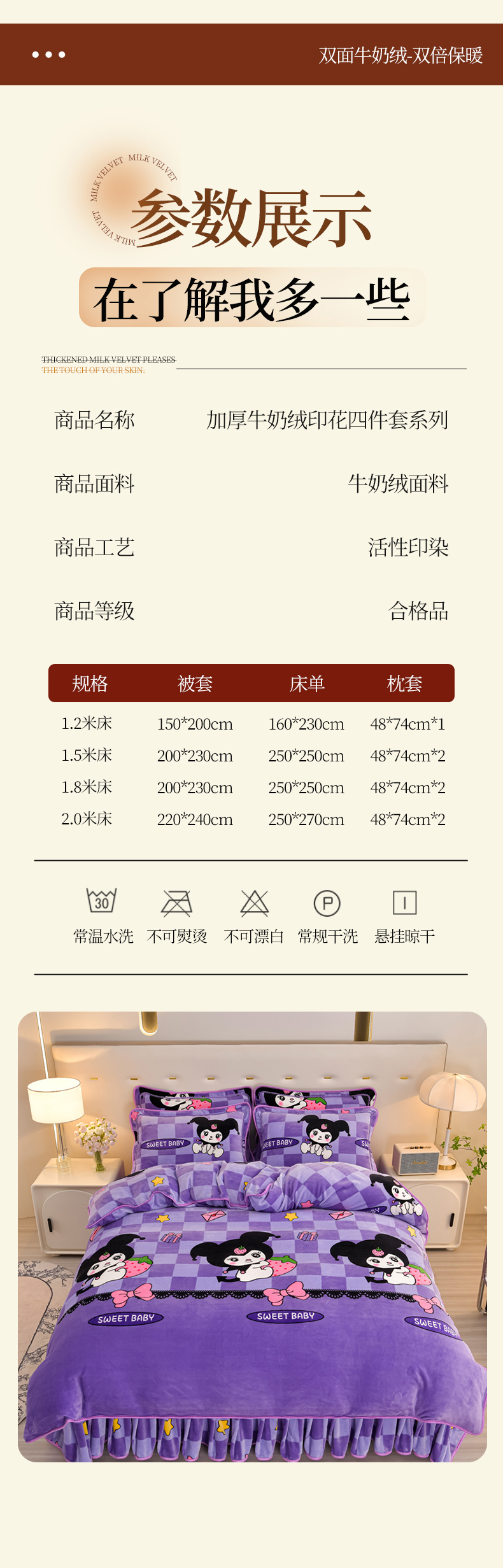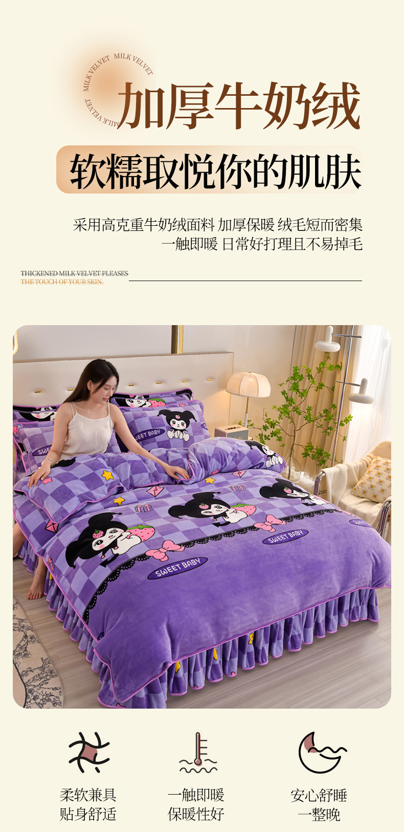 商品名称:雨洋2025新款加厚保暖8.5斤牛奶绒金貂婴儿绒四件套 魔法库洛米