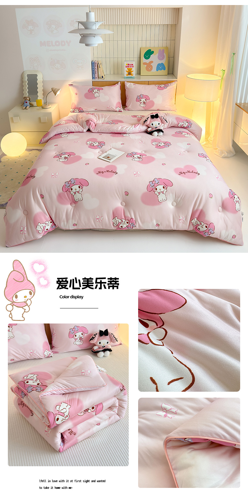 (总)木堇家居 2025春夏三丽鸥云柔棉毛巾绣夏被四件套,毛巾绣-粉色美乐蒂,毛巾绣-粉色kt猫,毛巾绣-蓝色帕恰狗,毛巾绣-小马大耳狗,毛巾绣-紫色库洛米