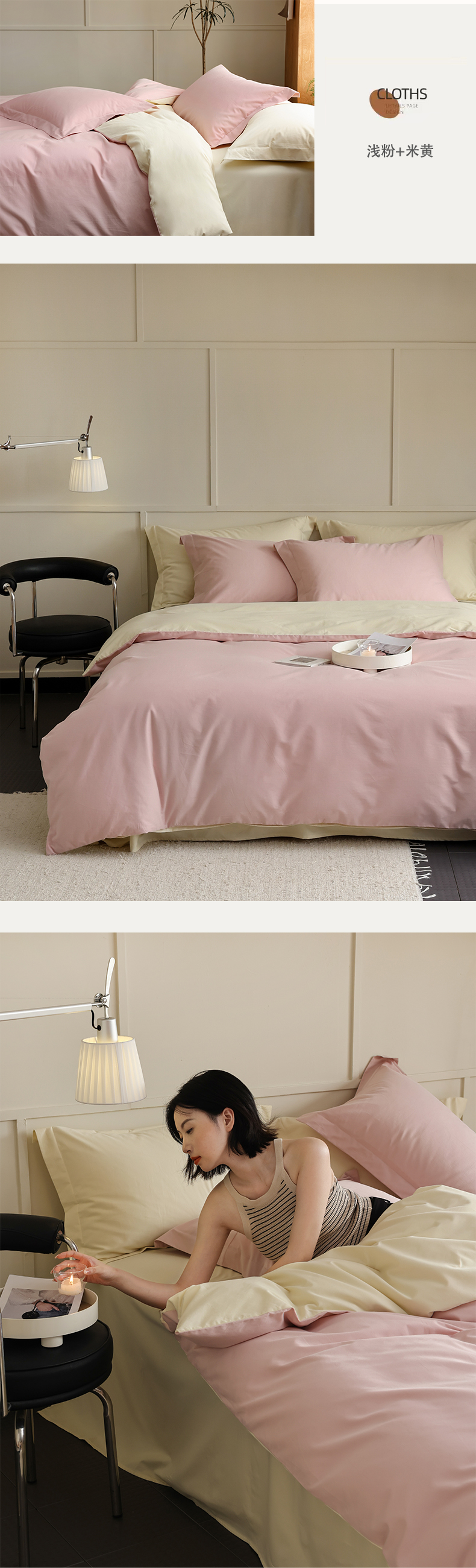 ROZ home 蕊姿家居 2024新款超柔磨毛全棉单被套 浅粉+米黄