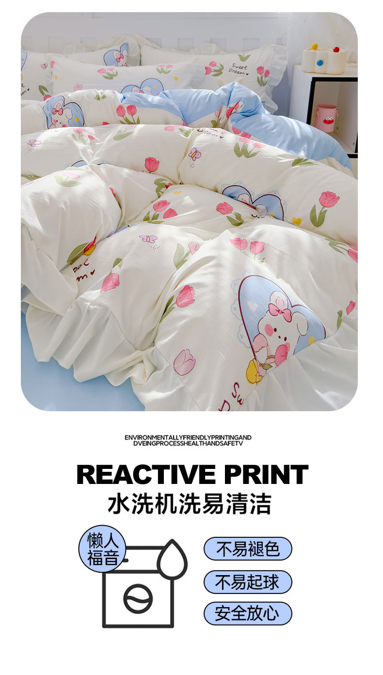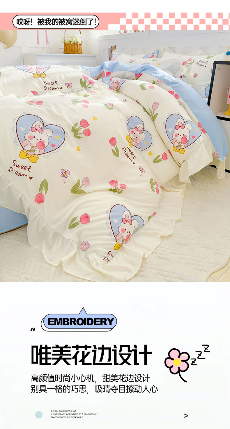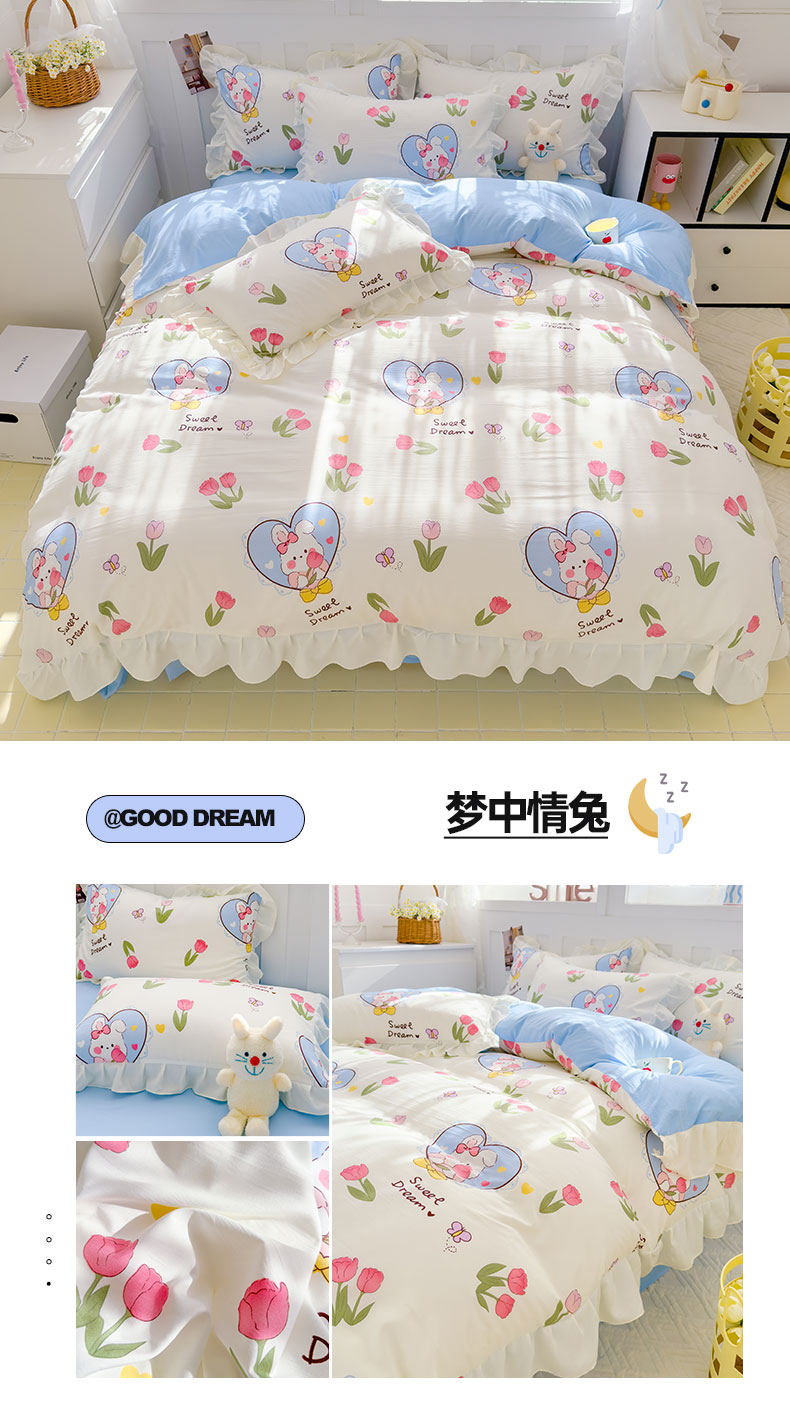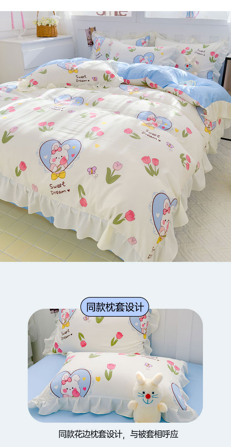 当前位置: 91家纺网 > 商品网购 > 床品套件 > 四件套 > 水洗棉四件套 > 灰鲸 2025新款ins水洗双层纱公主风四件套 梦中情兔