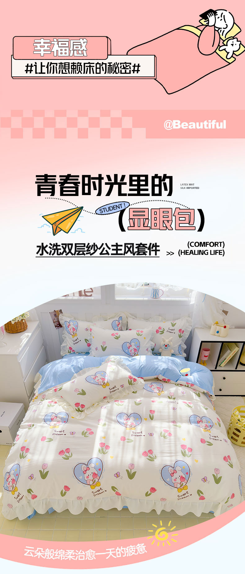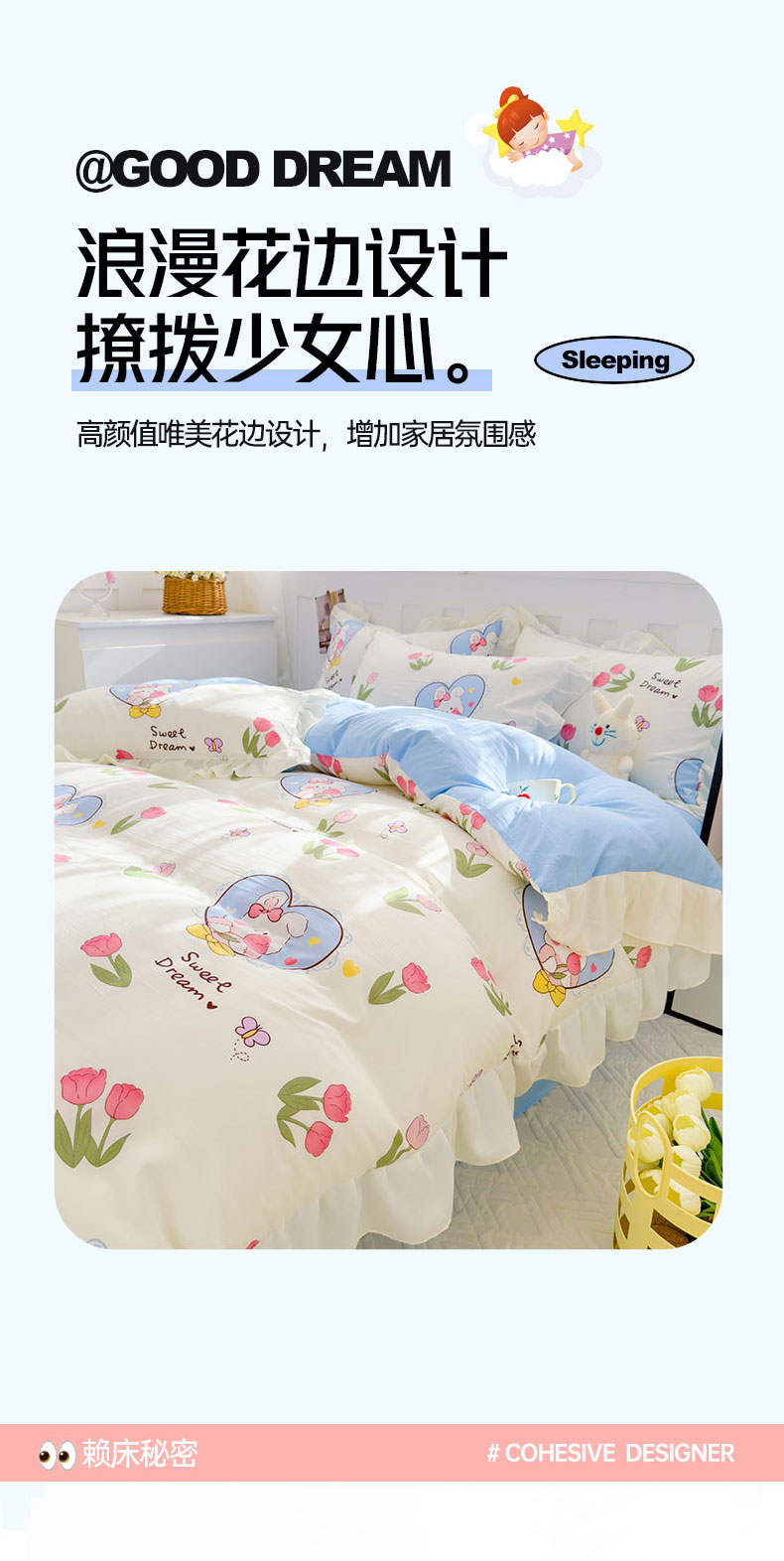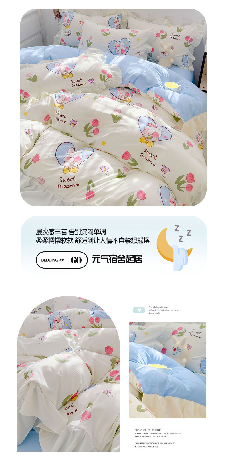 当前位置: 91家纺网 > 商品网购 > 床品套件 > 四件套 > 水洗棉四件套 > 灰鲸 2025新款ins水洗双层纱公主风四件套 梦中情兔