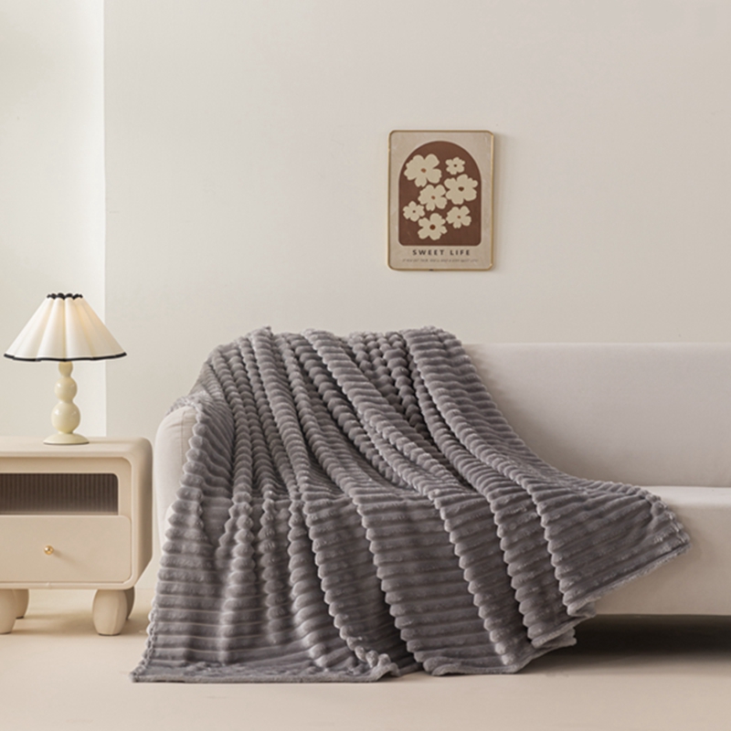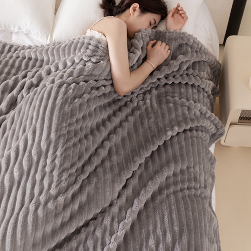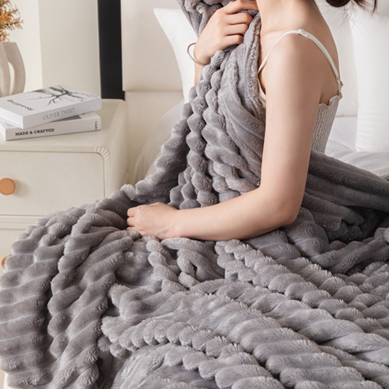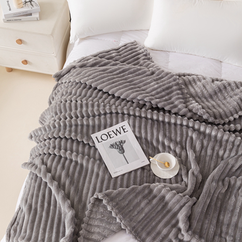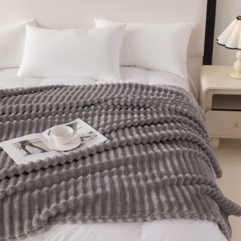 商品名称:锦禾穗 2024新款兔毛绒多功能毛毯高克重抽条纯色加宽加厚双面绒 兔毛灰