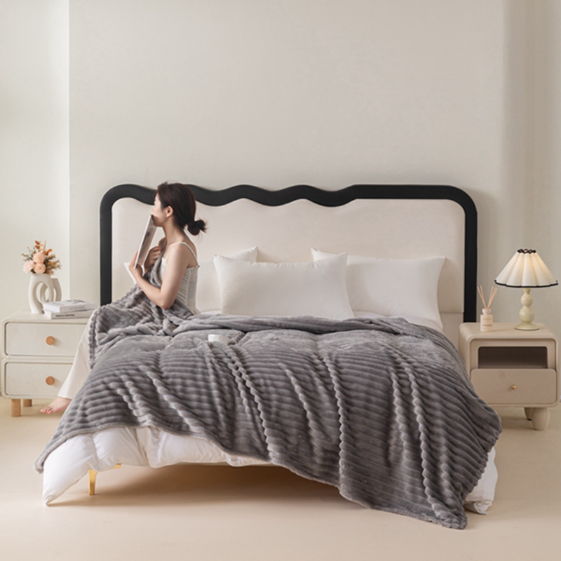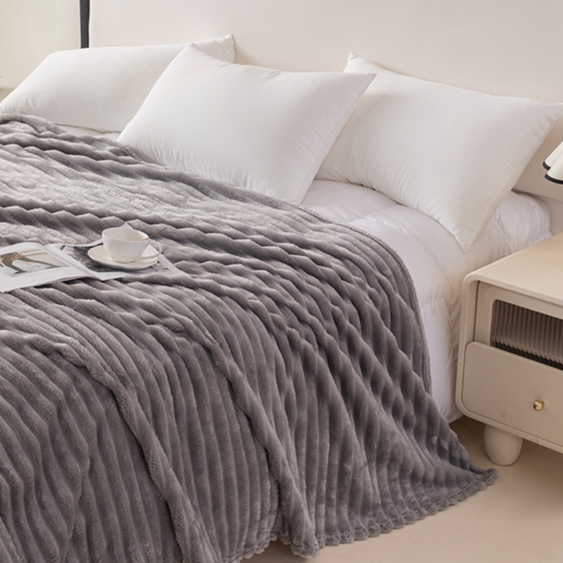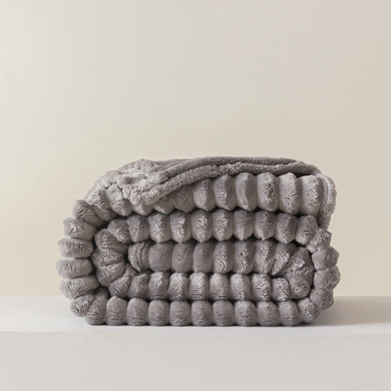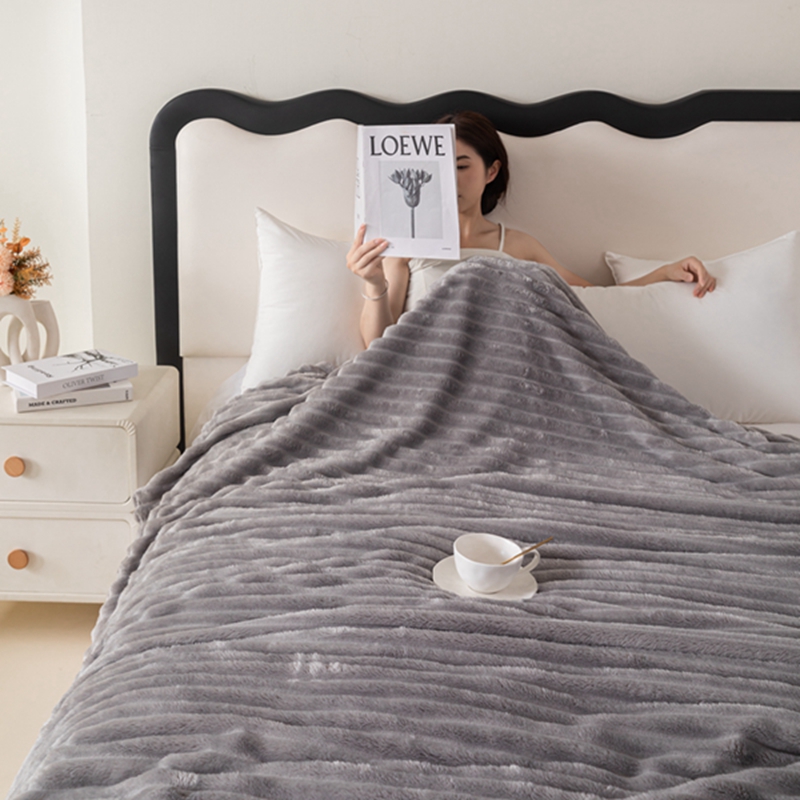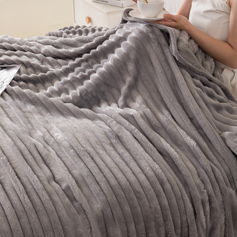 商品名称:锦禾穗 2024新款兔毛绒多功能毛毯高克重抽条纯色加宽加厚双面绒 兔毛灰
