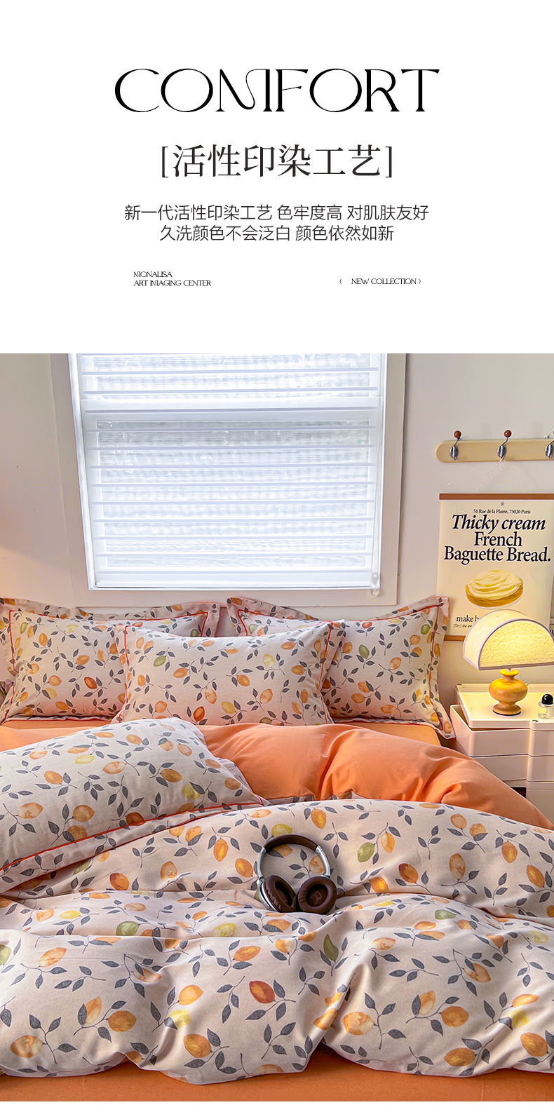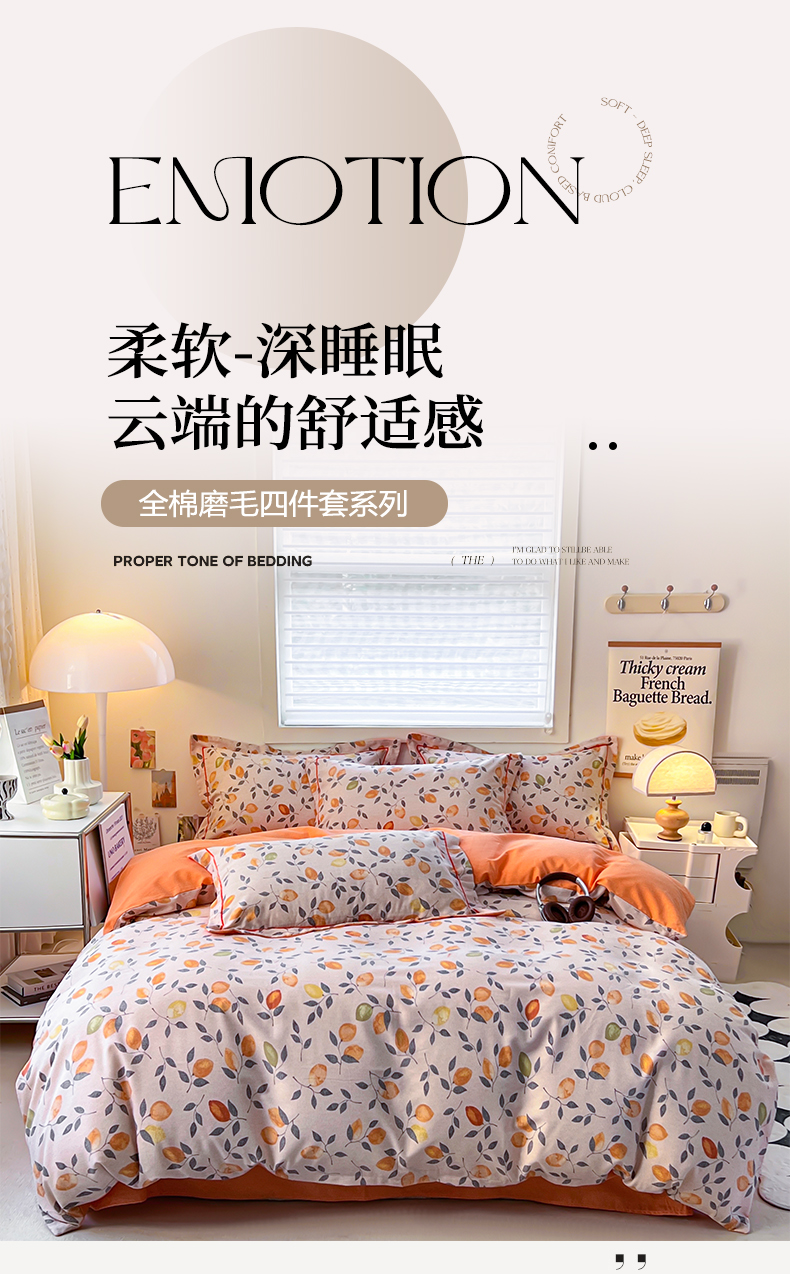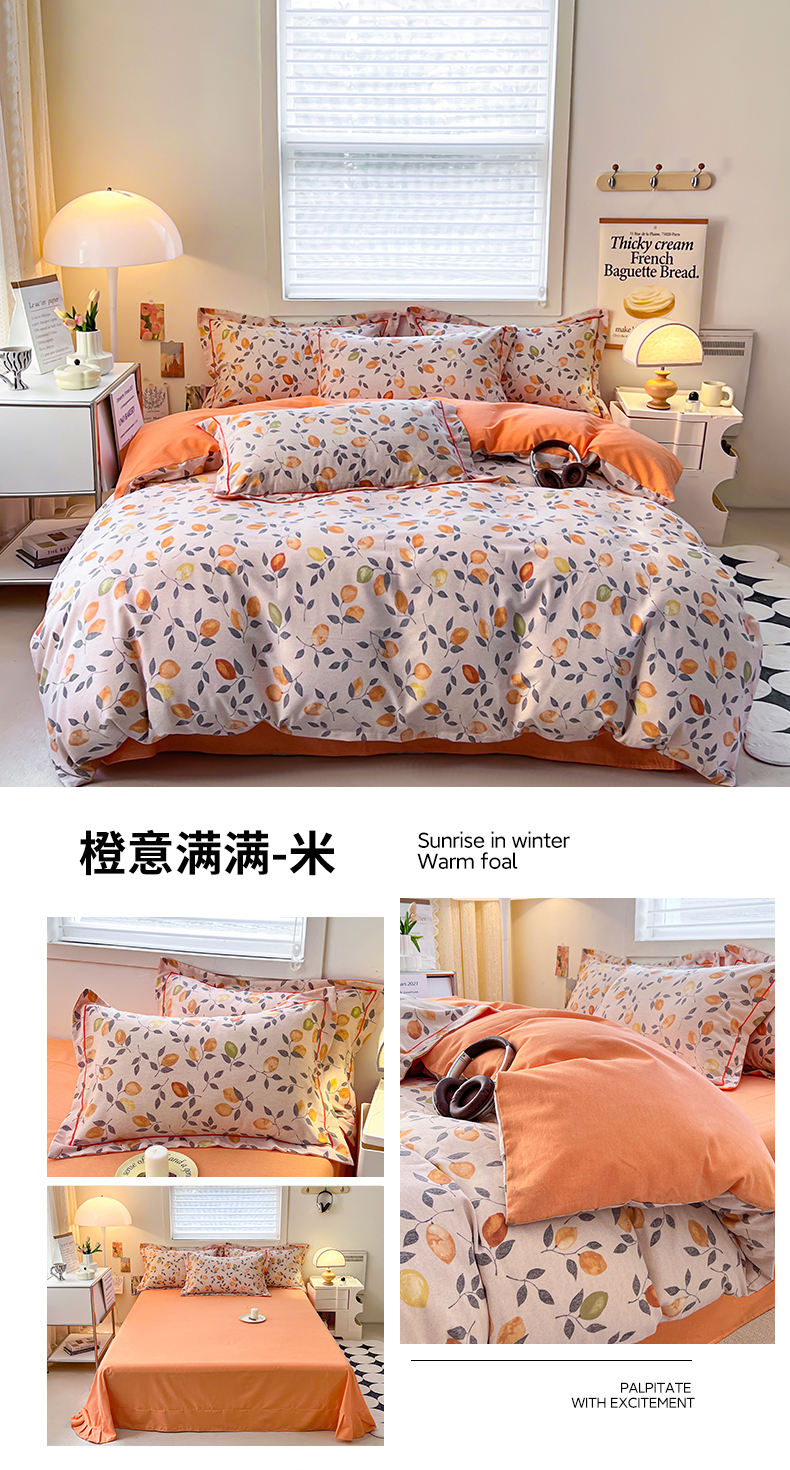 当前位置: 91家纺网 > 商品网购 > 床品套件 > 四件套 > 普通磨毛四件套 > 眷恋家纺 2025秋冬新款全棉纯棉喷气加厚磨毛纯棉四件套 橙意满满-米