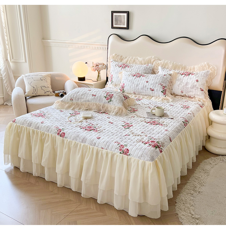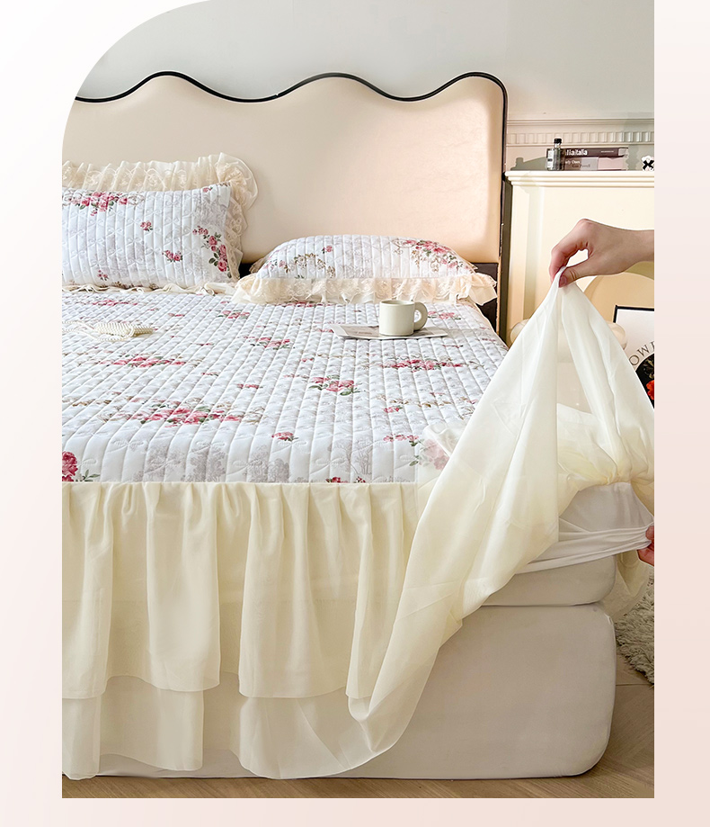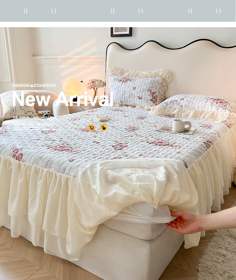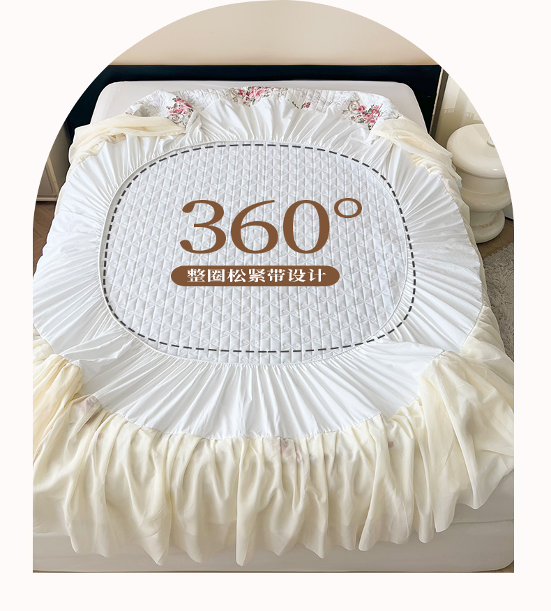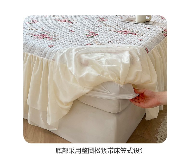 • 91家纺网 家纺一手货源 找家纺 恋尚 2025新款印花蜜桃棉夹棉床笠式单床裙韩版花边床裙 黛茜