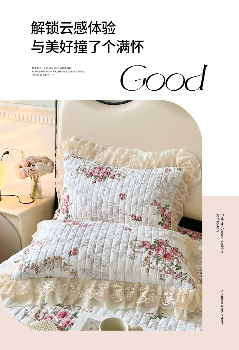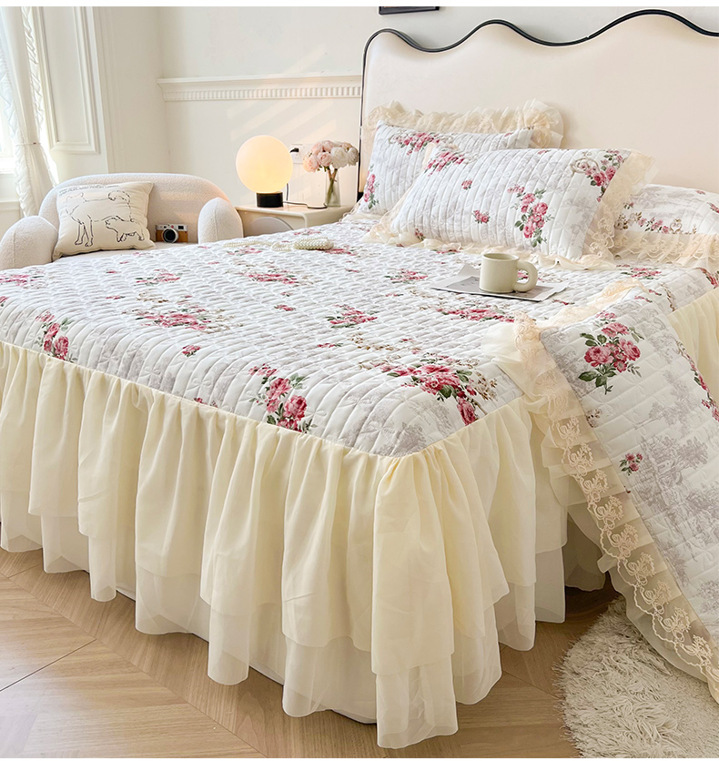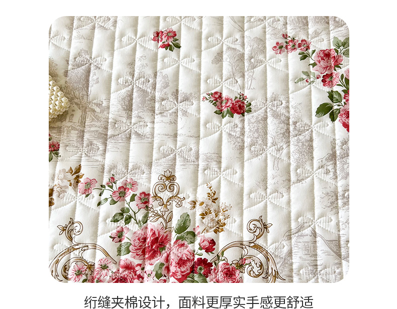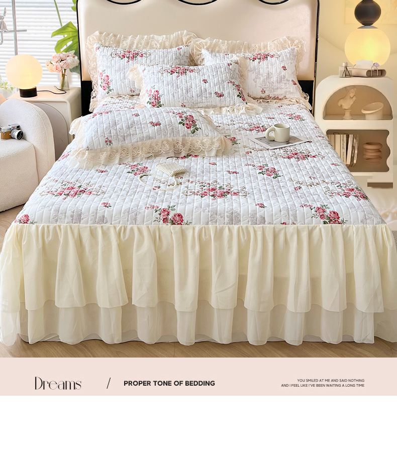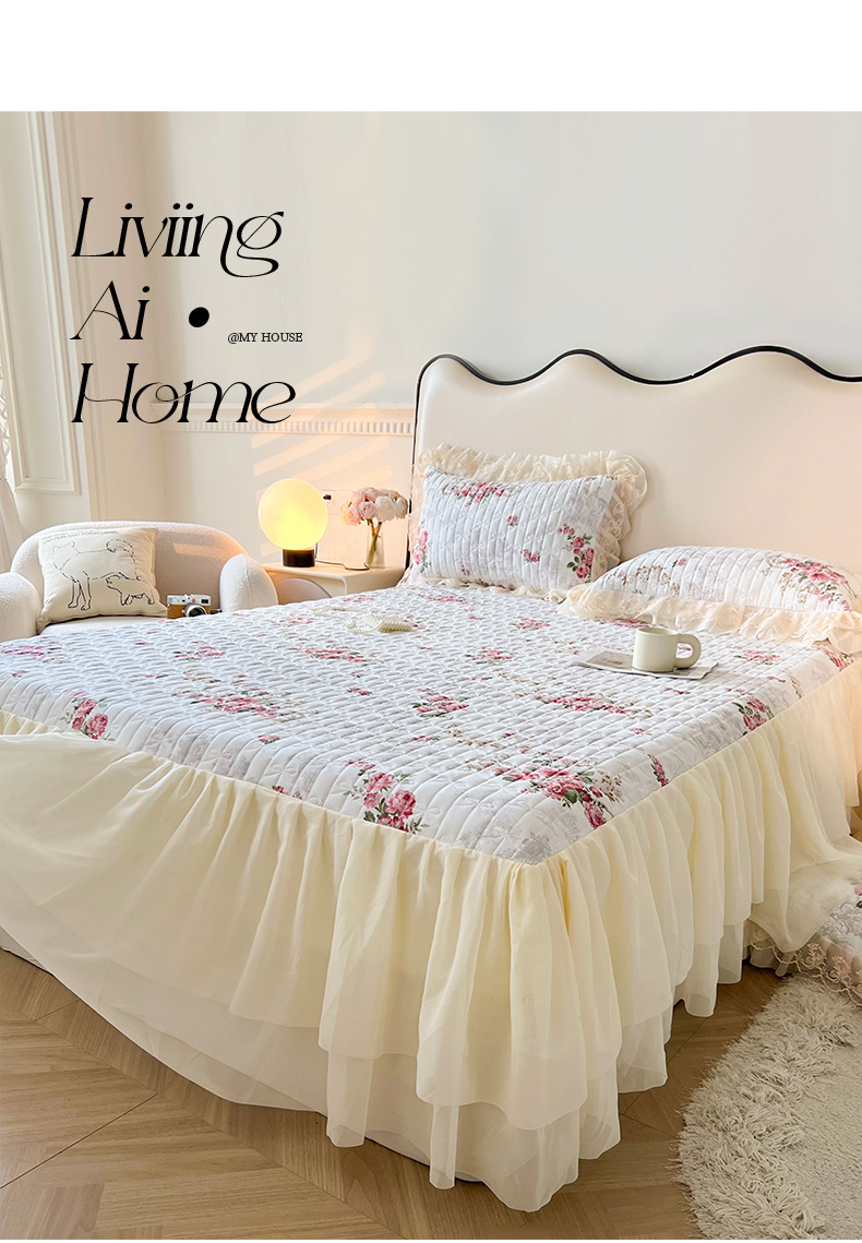 • 91家纺网 家纺一手货源 找家纺 恋尚 2025新款印花蜜桃棉夹棉床笠式单床裙韩版花边床裙 黛茜