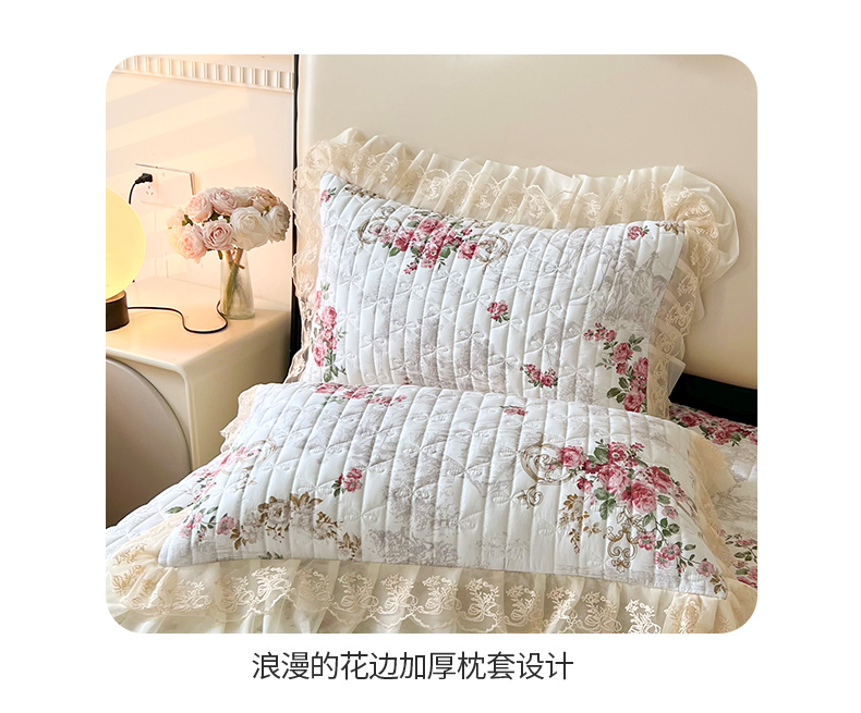 恋尚 2025新款印花蜜桃棉夹棉床笠式单床裙韩版花边床裙 黛茜