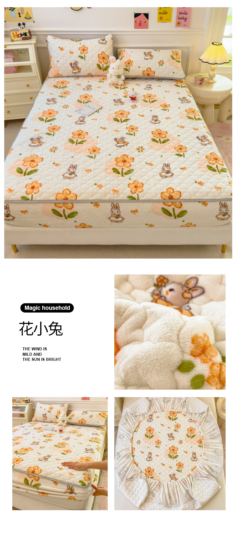 • 91家纺网 家纺一手货源 找家纺 丝羽坊 2024新款A类加厚牛奶绒夹棉床笠 花小兔