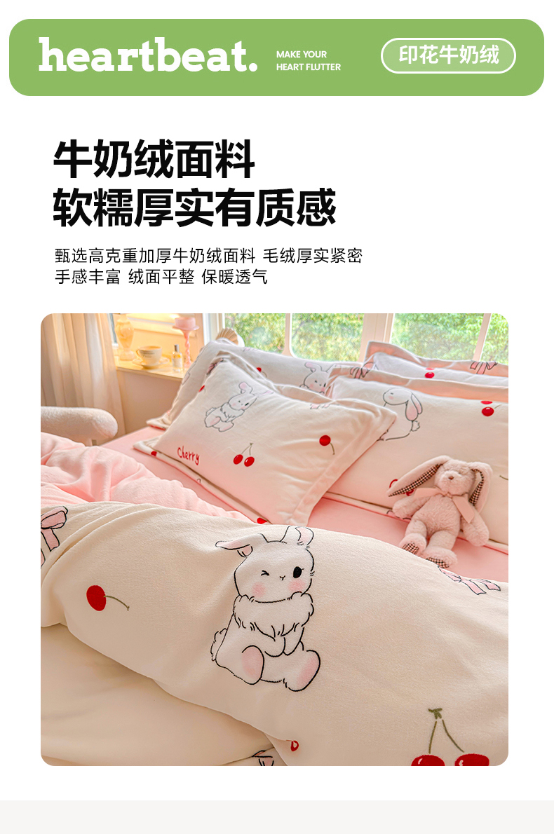 (总)呗旺鹿 2026新款全棉40支12868田园卡通小清新系列四件套,雅柔,蓝叶兔,软糖萌宠,三小只,童话乐园,小熊艺语,樱桃小象,H萝卜兔,L红茶兔兔,L欧包小奶兔,L浅糖兔叽