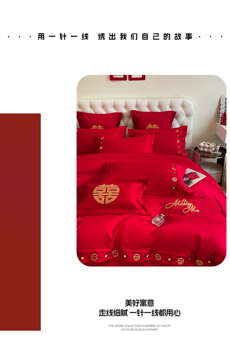(总)欧乐蒂 2025新款全棉刺绣婚庆四件套,佳偶天成,龙凤和美,龙姿凤彩,玫瑰恋人,倾城之恋,双囍临门,甜蜜爱情,囍结良缘