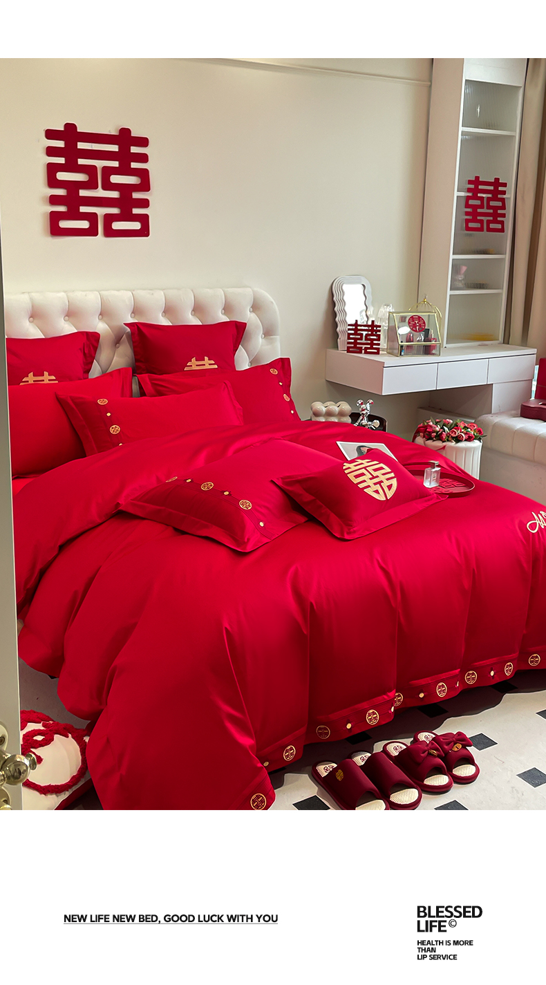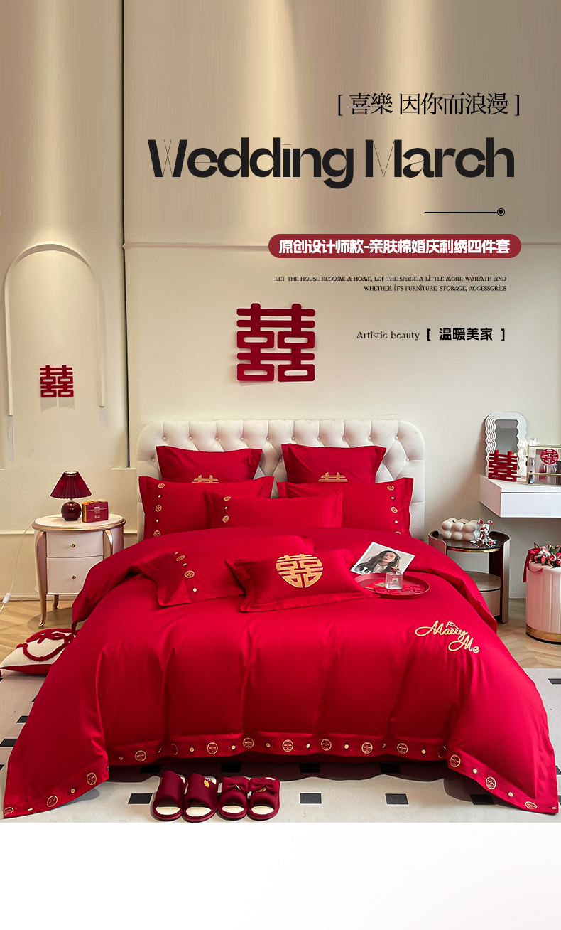 欧乐蒂 2025新款亲肤棉婚庆刺绣四件套系列 爱相随