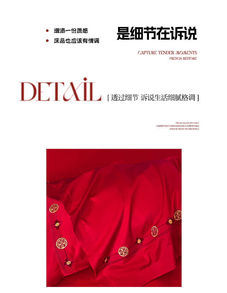 (总)欧乐蒂 2025新款亲肤棉刺绣花边婚庆四件套-倾城,倾城-金,倾城-喜红