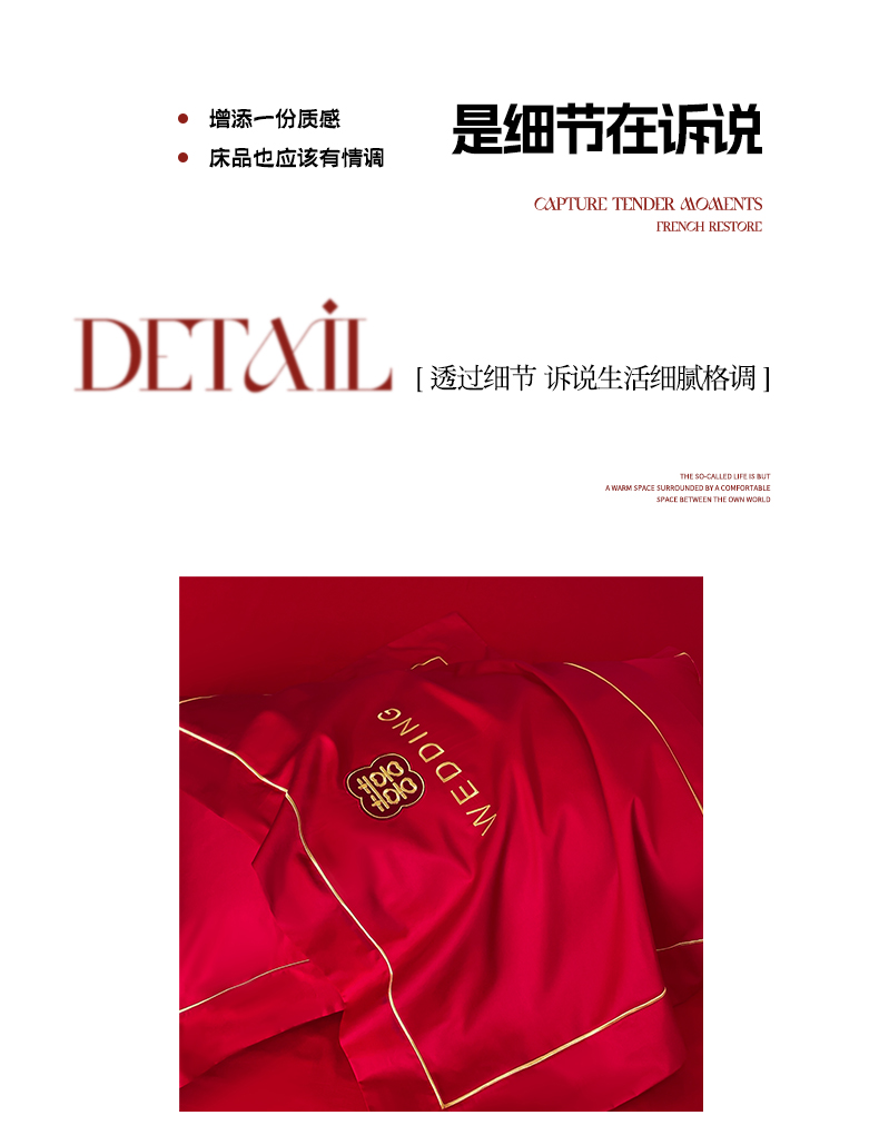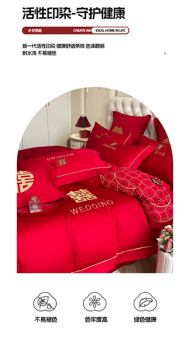 (总)欧乐蒂 2025新款亲肤棉刺绣花边婚庆四件套-倾城,倾城-金,倾城-喜红